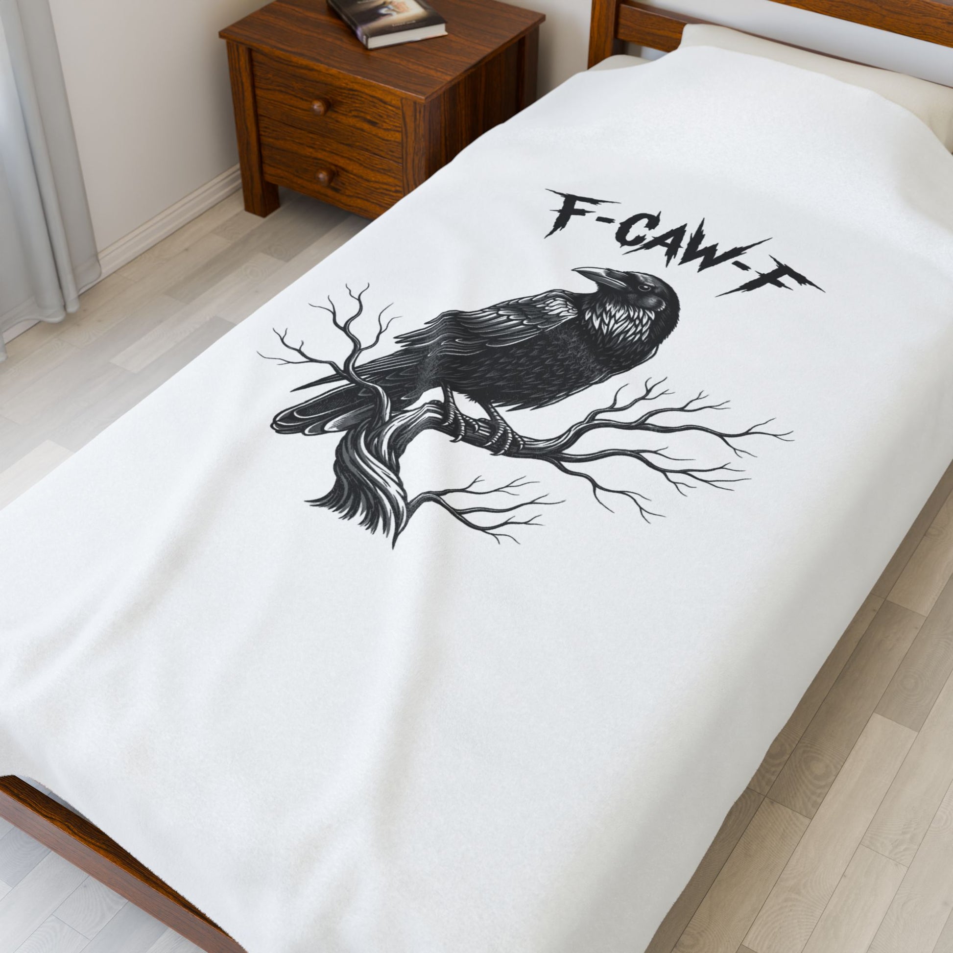 Cawing Raven Plush Blanket | Soft Throw for Cozy Nights, Home Decor, Gifts for Bird Lovers, Halloween Decor, Rustic Living