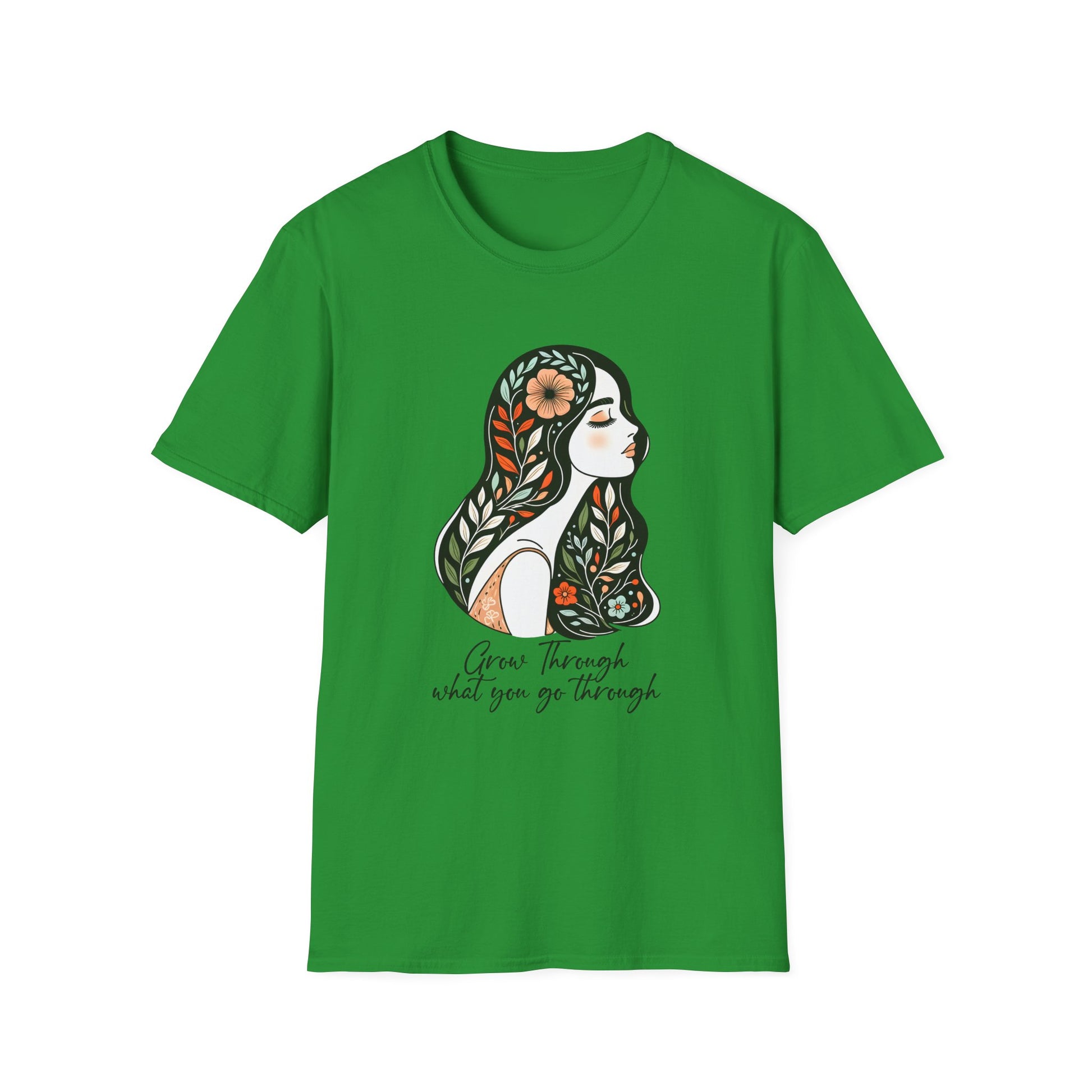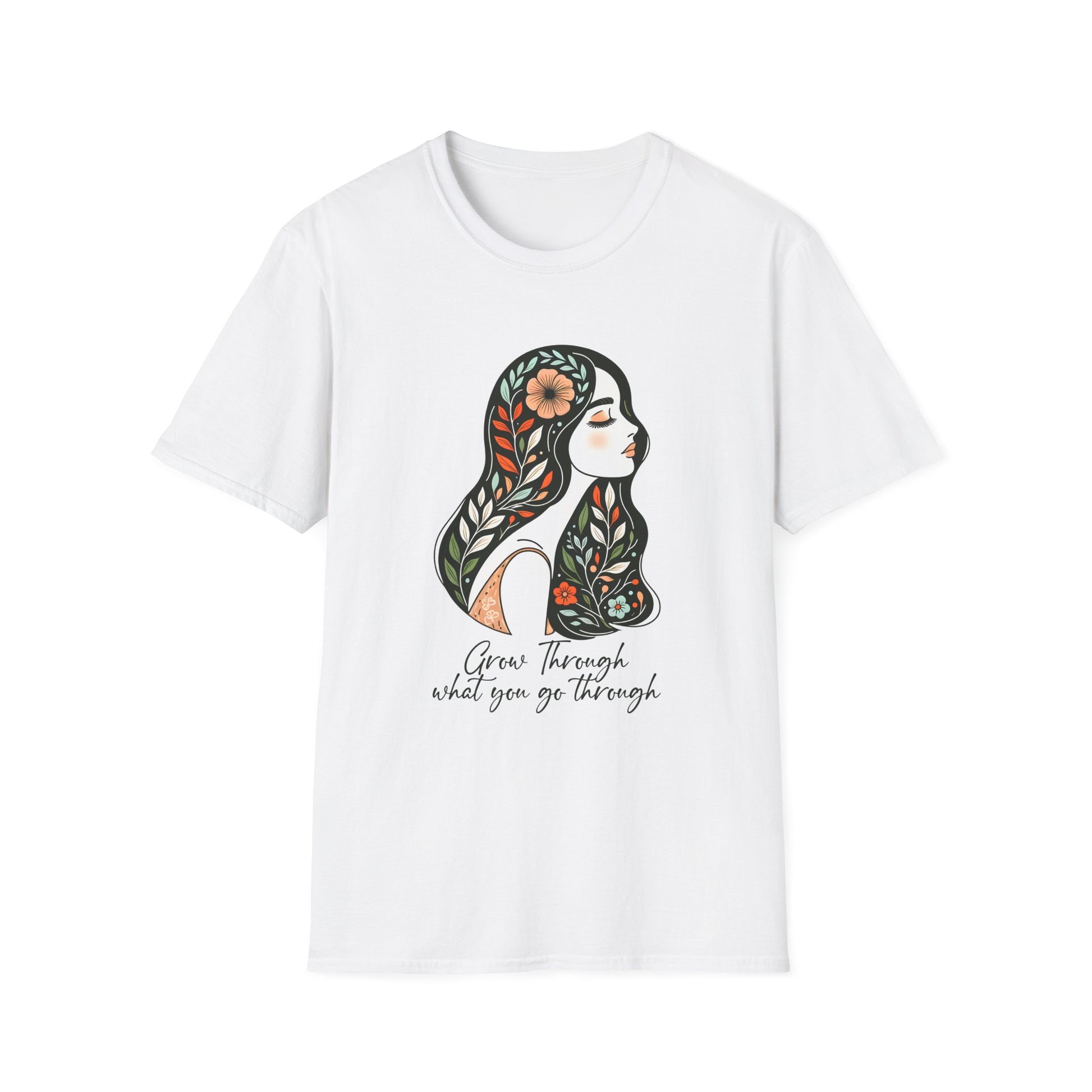 Grow Through Inspirational Unisex Softstyle T-Shirt, Motivational Tee, Self-Care Shirt, Gift for Women, Mindfulness Apparel