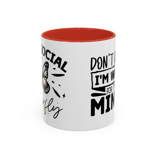 Coffee Mug, Funny Mug with Anti Social Butterfly and Don't Rush Me Designs, Office Mug, White Mug with Colorful Handle, Cute Mug, Unique