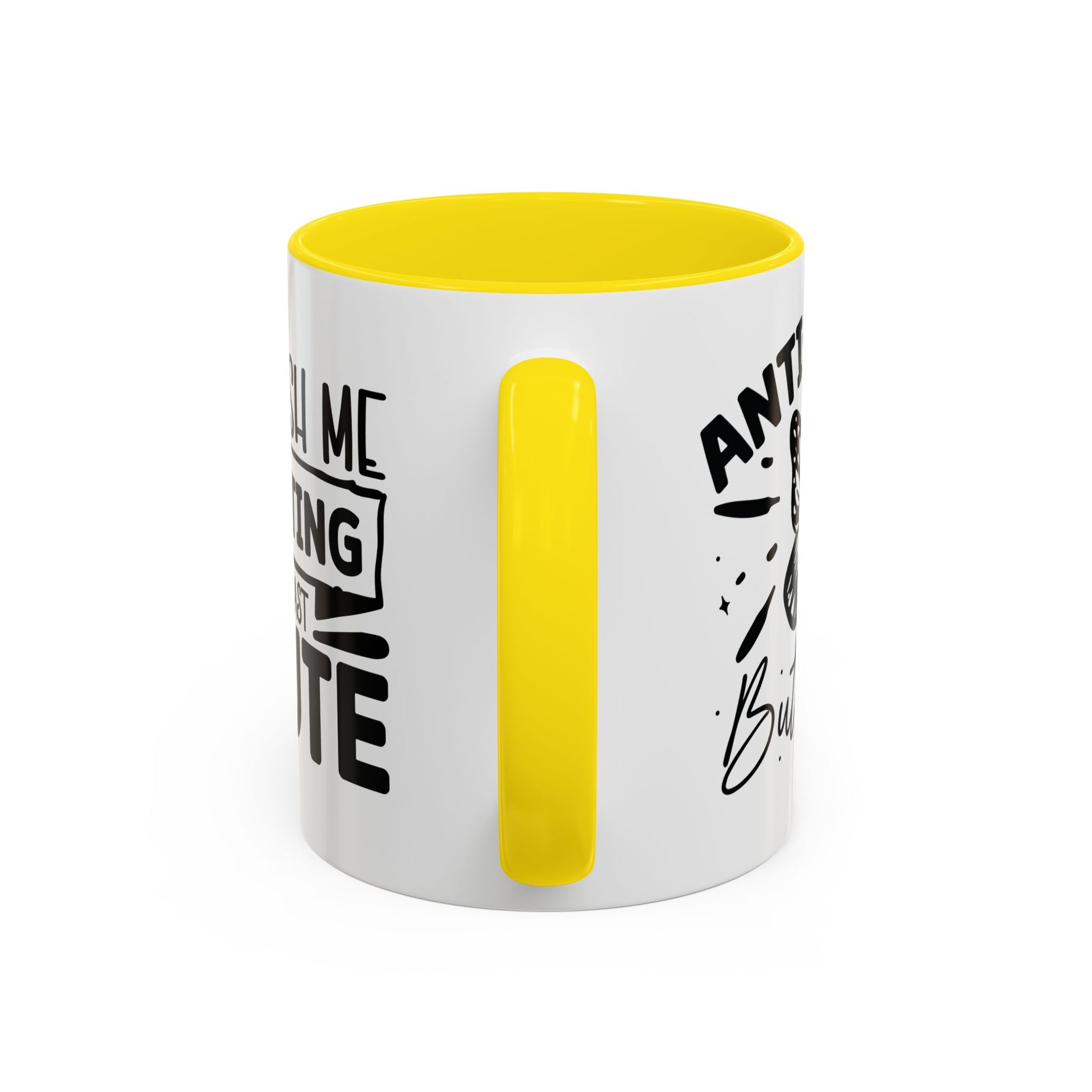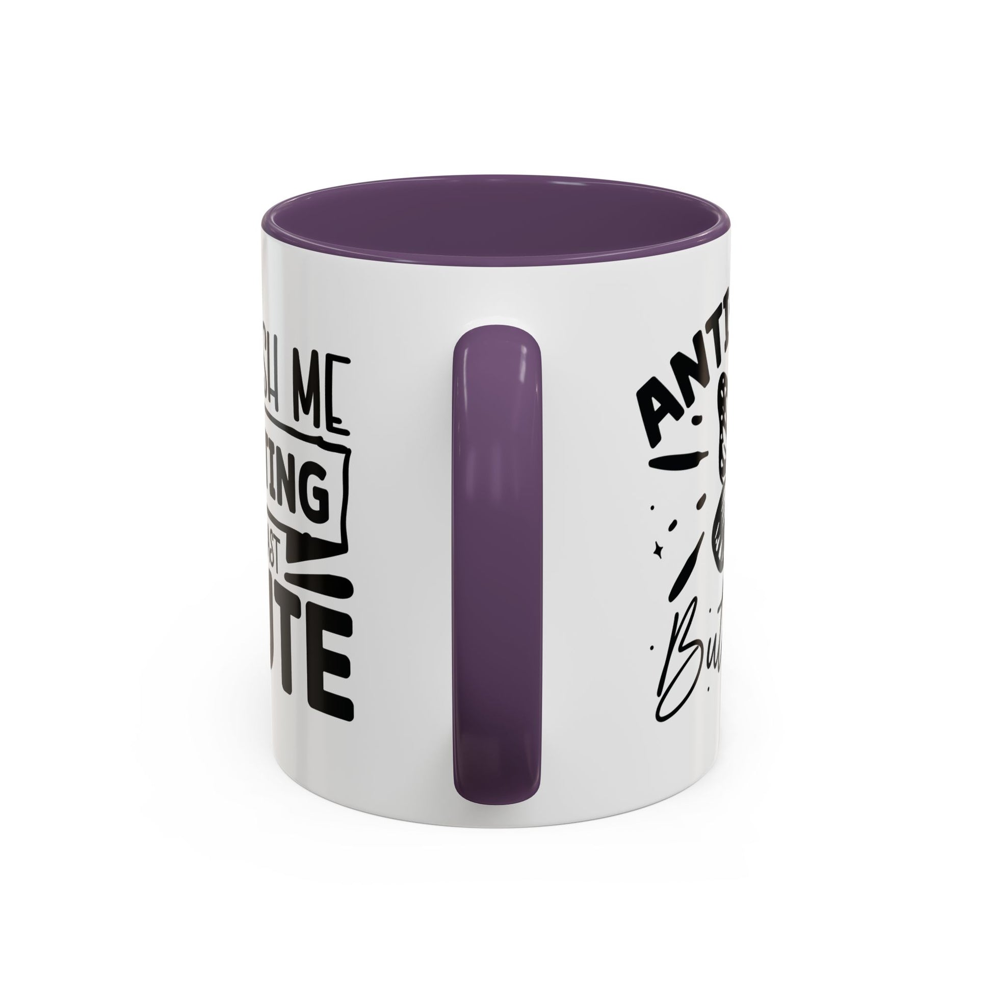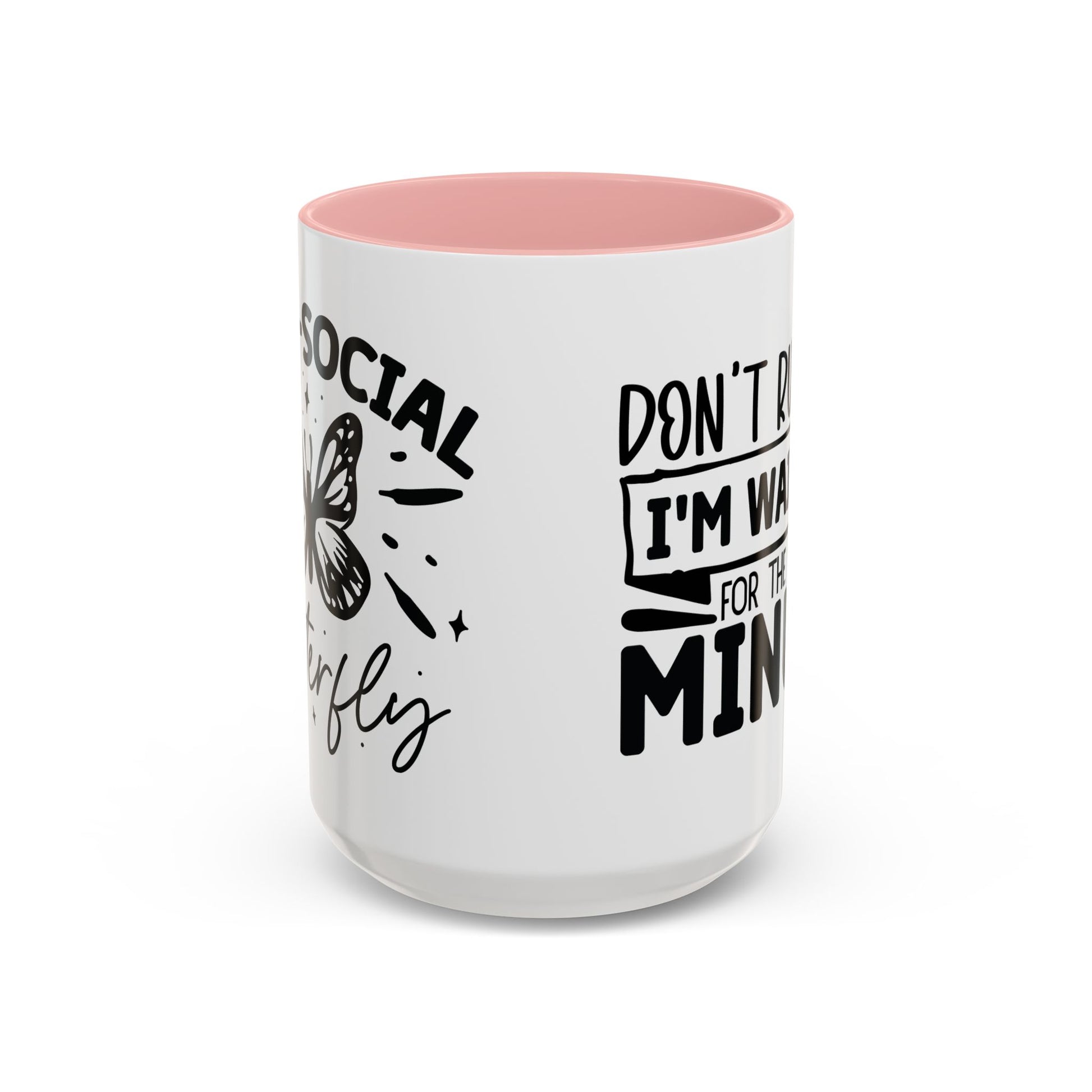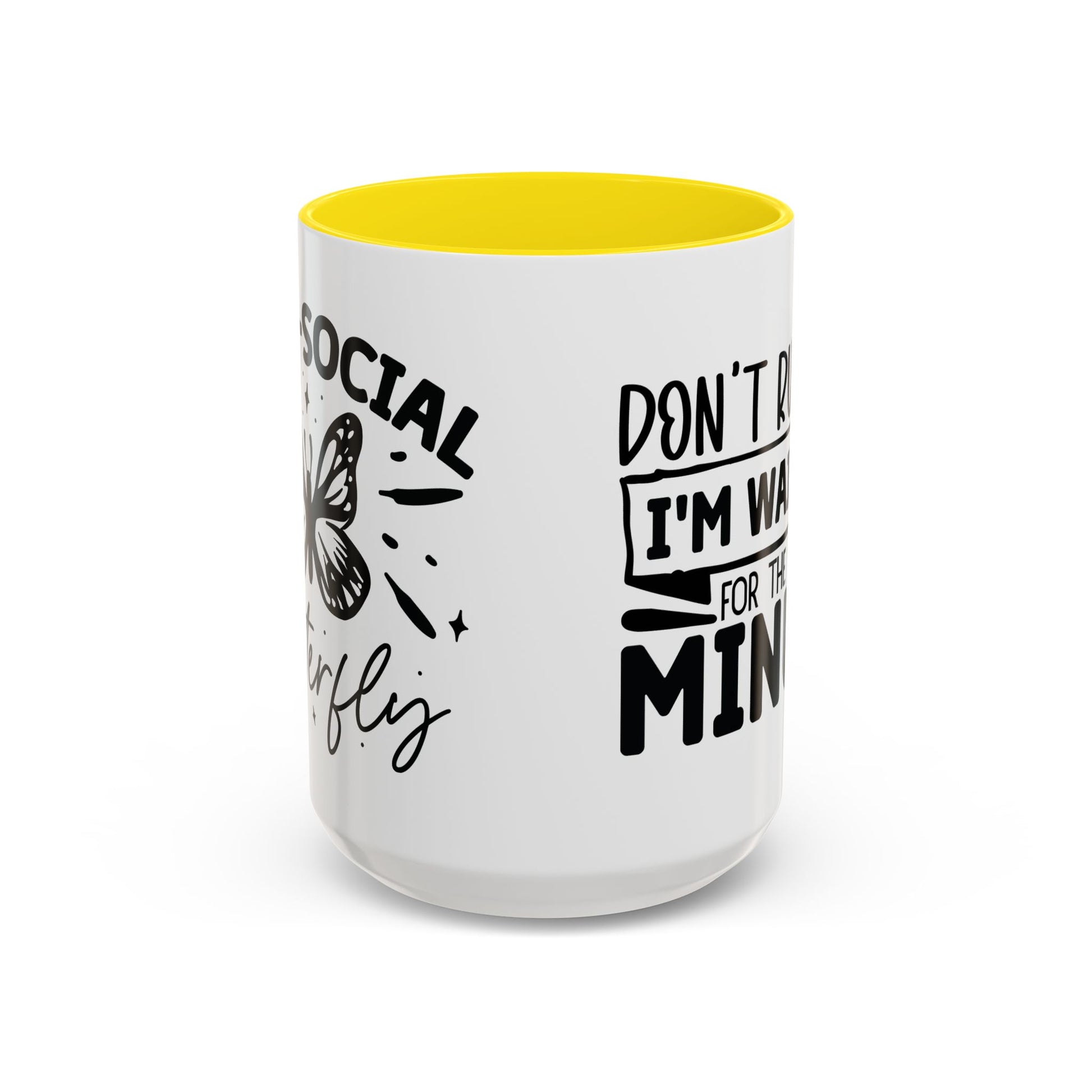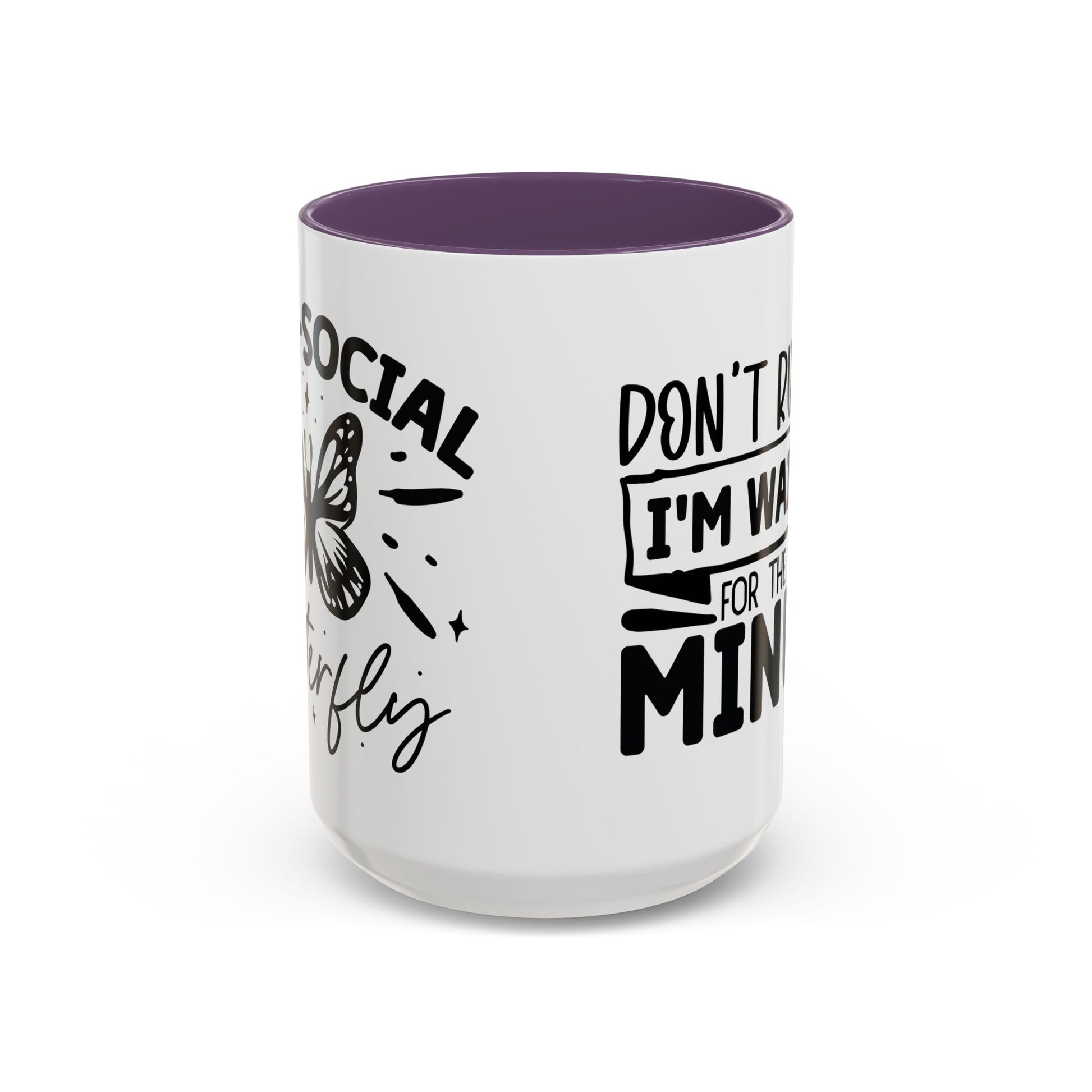 Coffee Mug, Funny Mug with Anti Social Butterfly and Don't Rush Me Designs, Office Mug, White Mug with Colorful Handle, Cute Mug, Unique
