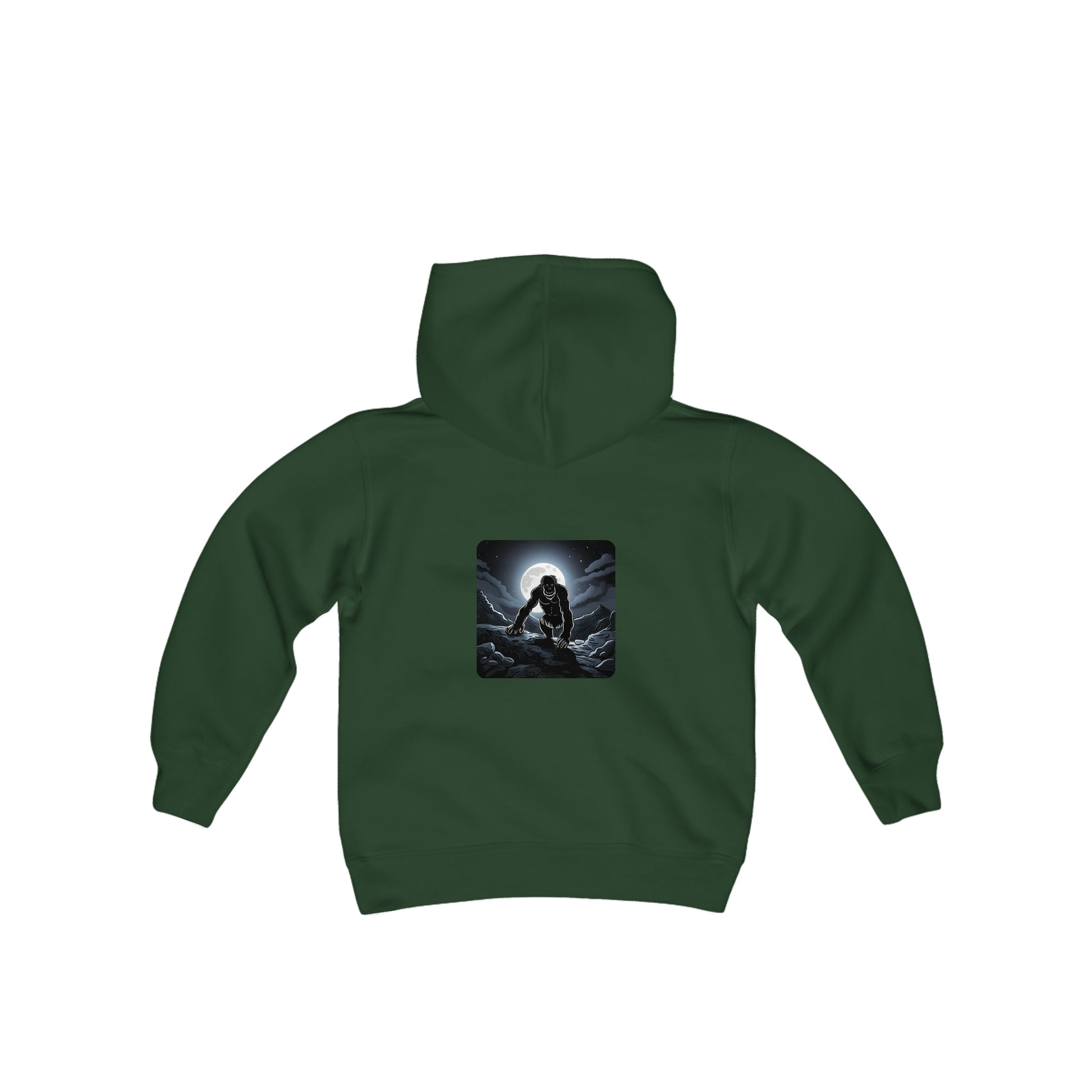 Normal con cara Logo Frontal. Detrás hay una imagen artificial de Bigfoot sobre un fondo de montaña iluminado por la luna.