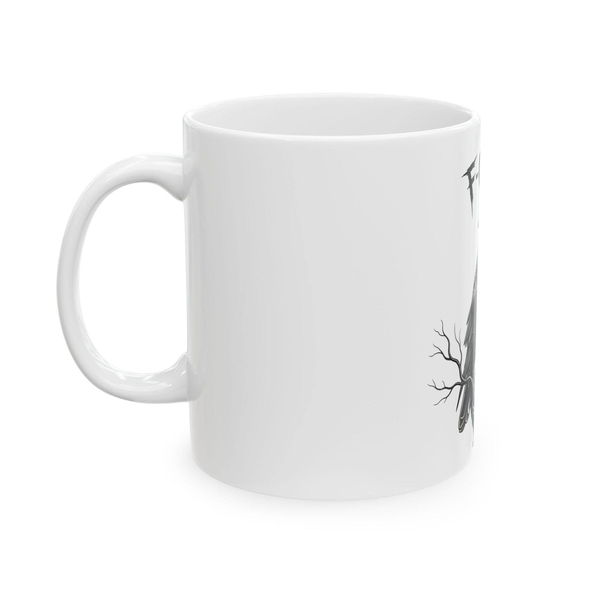 Caw-F Caw-F Ceramic Mug, Gothic Style Coffee Cup, Raven Motif Mug, Unique Gift for Bird Lovers, Home Decor, Halloween Decoration