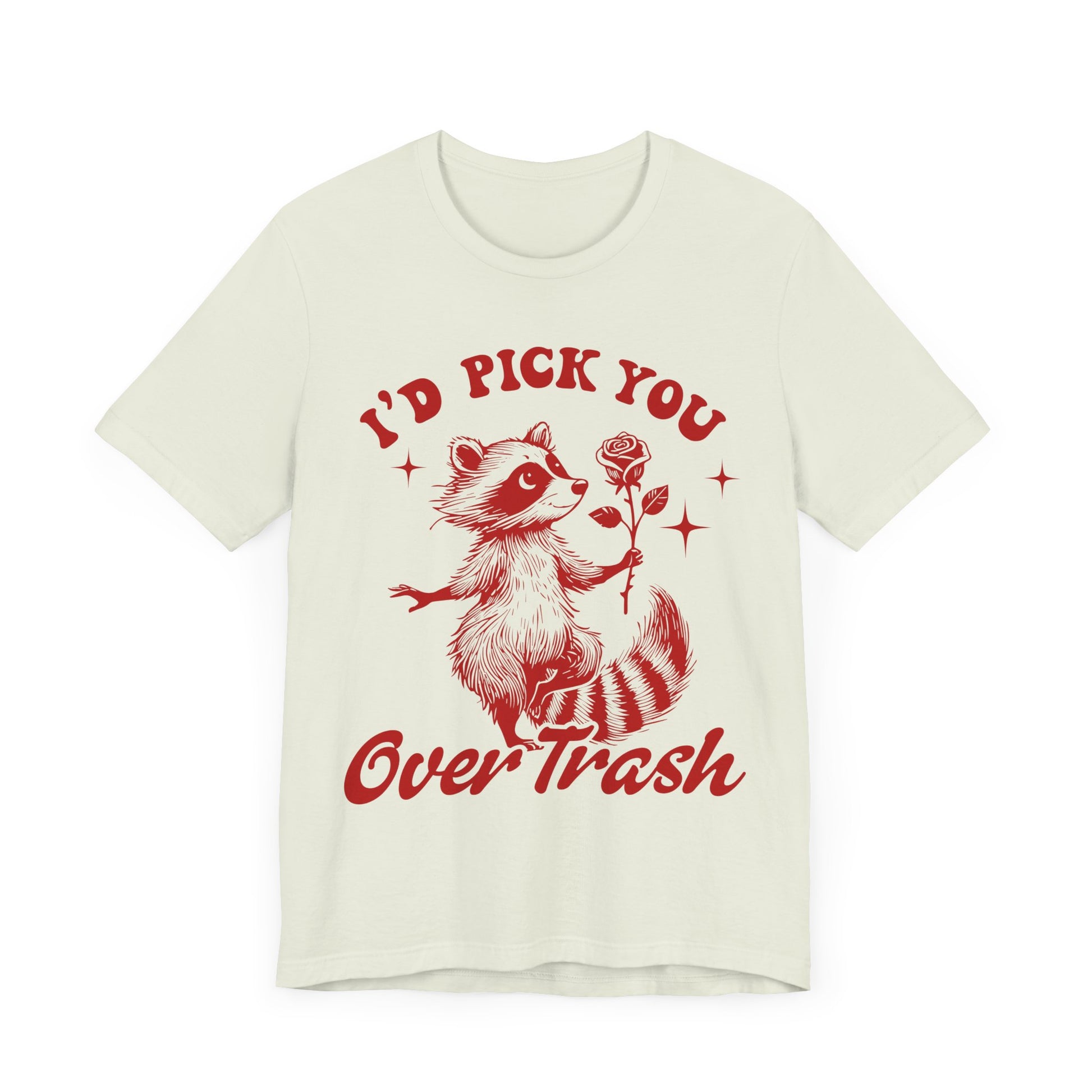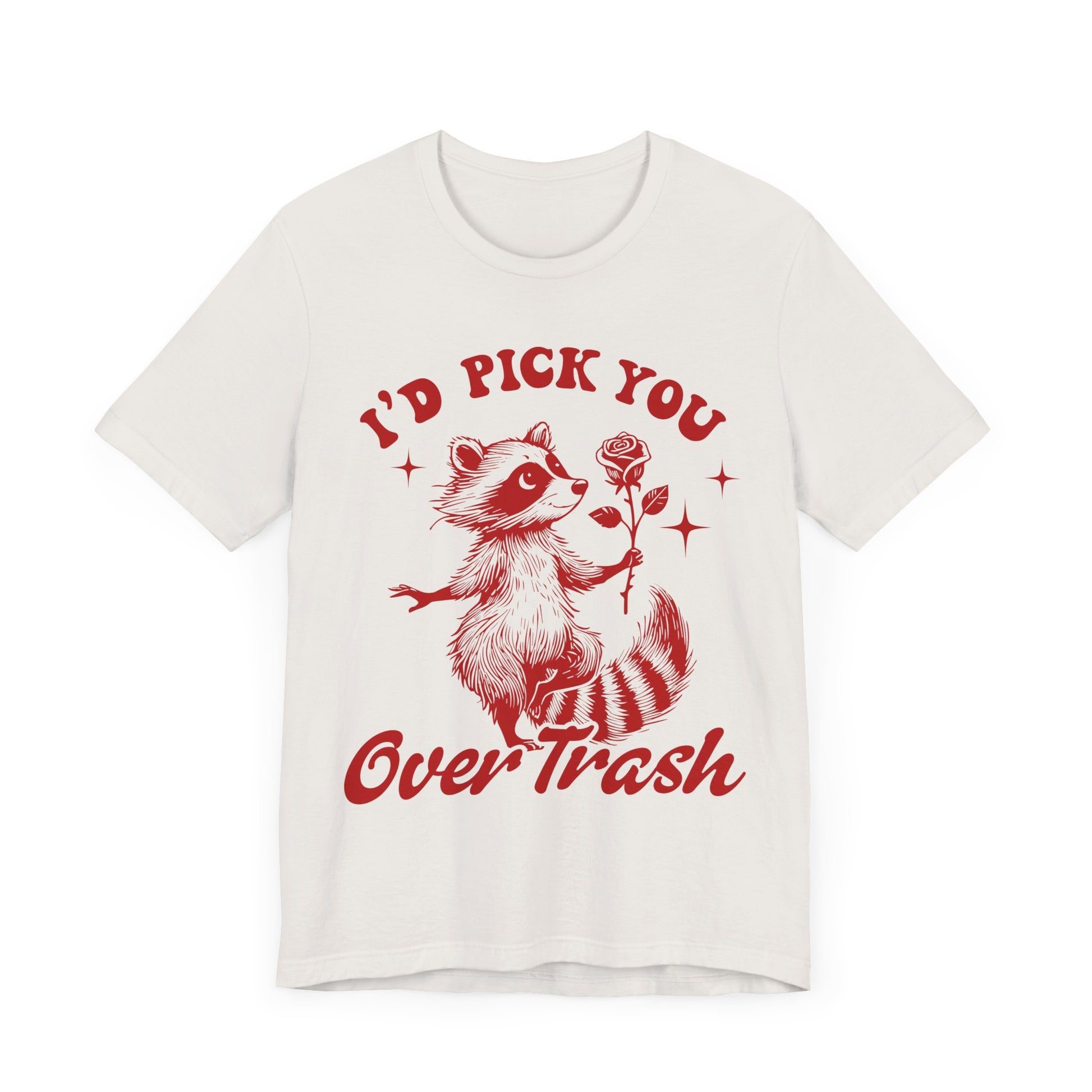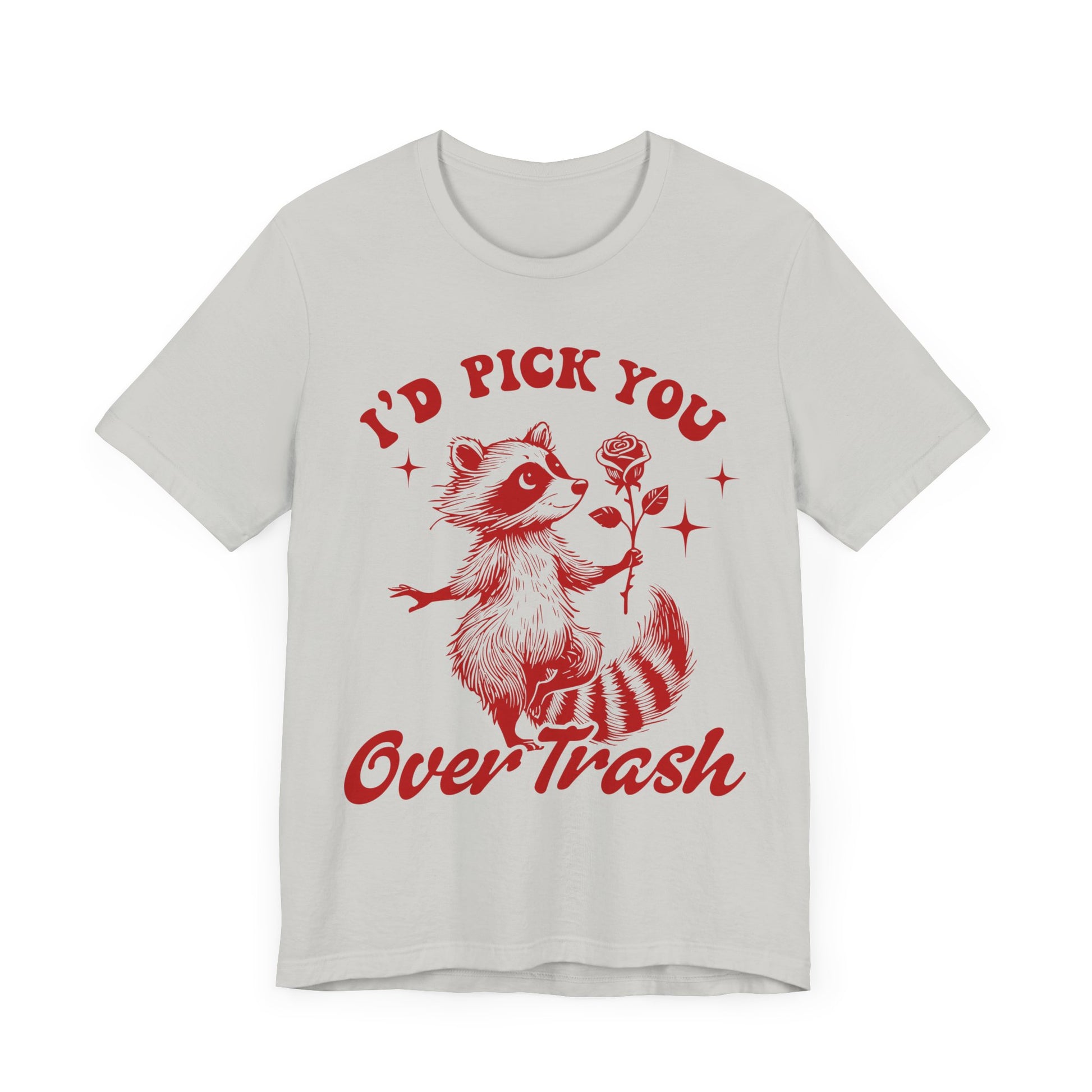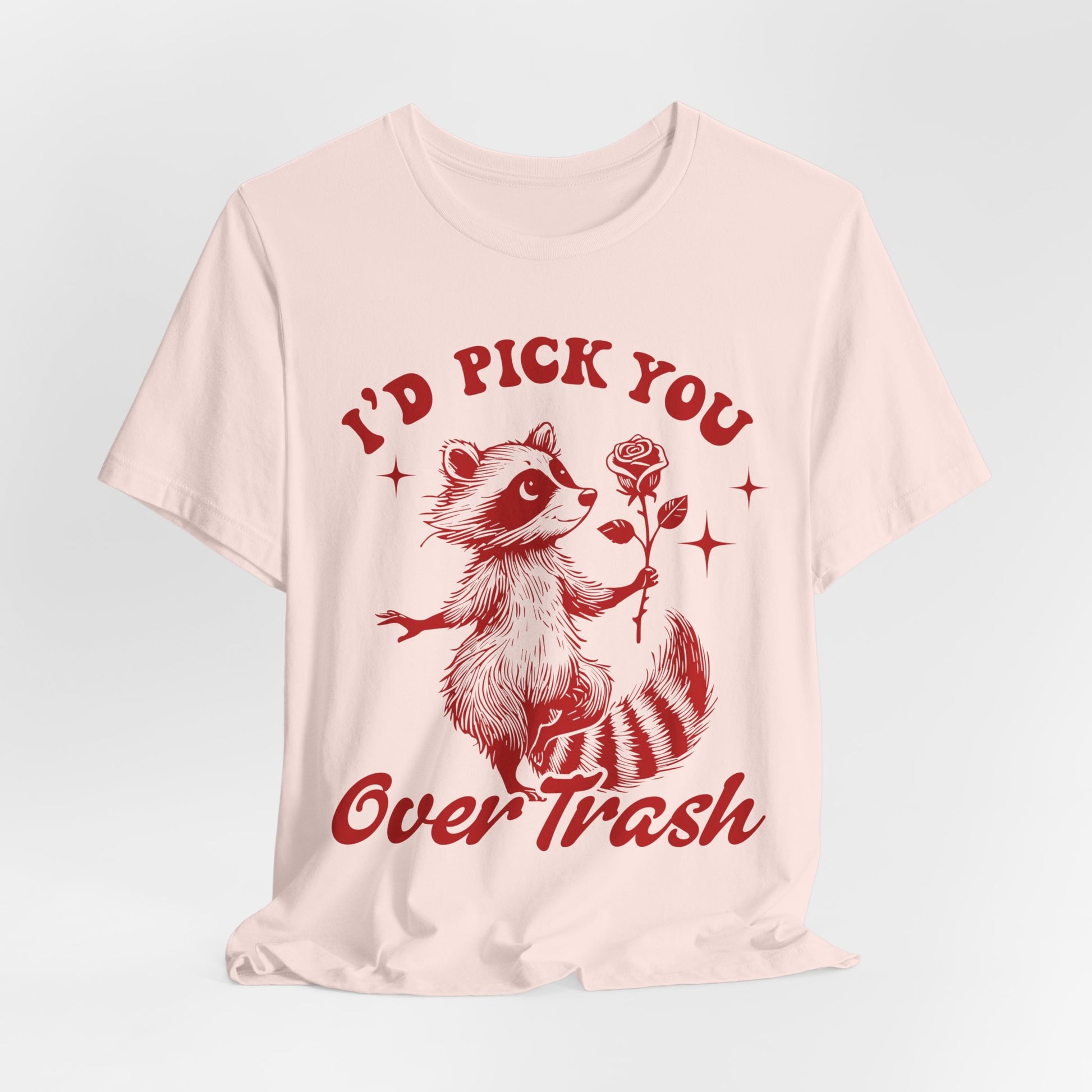 Image of a Raccoon Offering a Rose "I'd Pick YOU over Trash" - Unisex Jersey Short Sleeve Tee