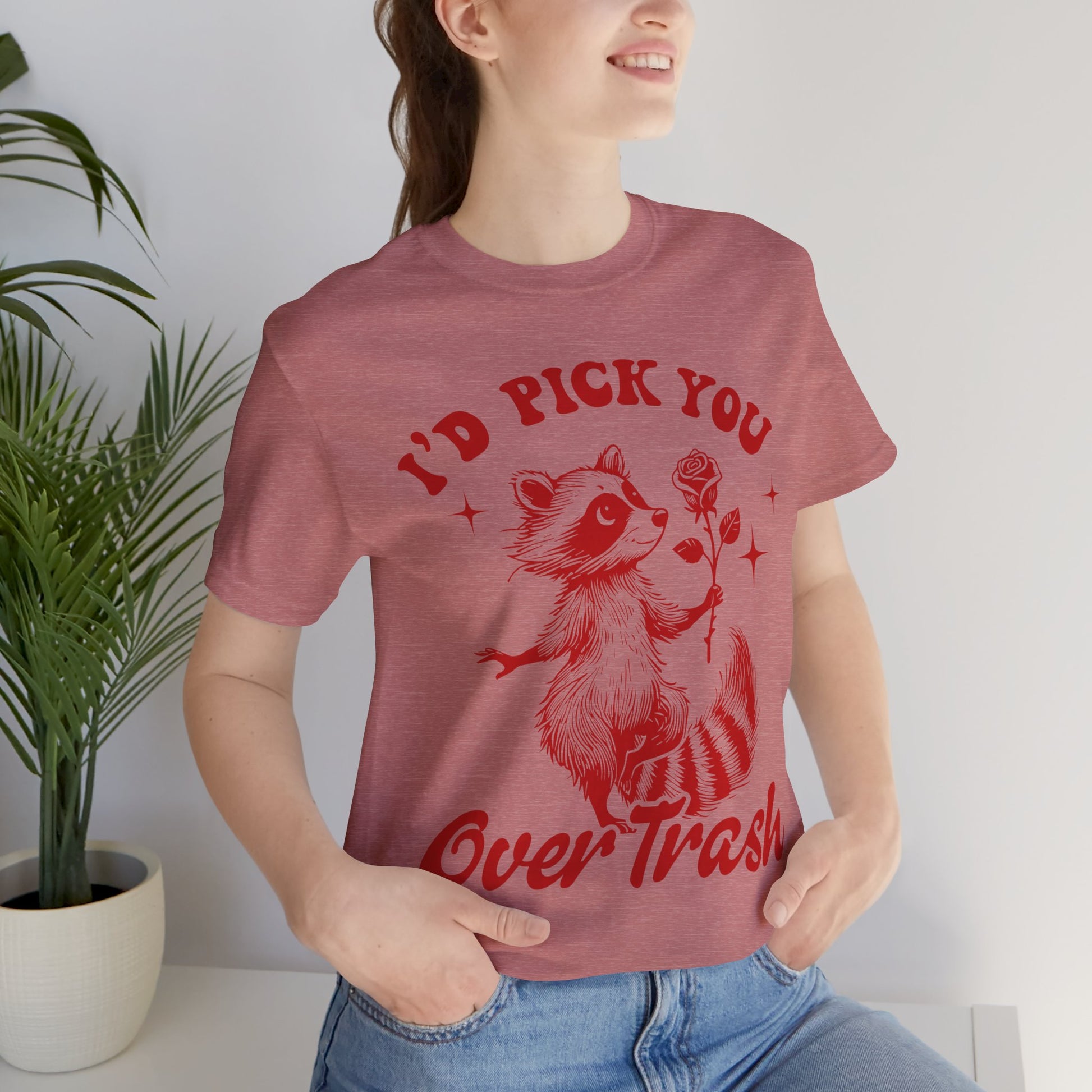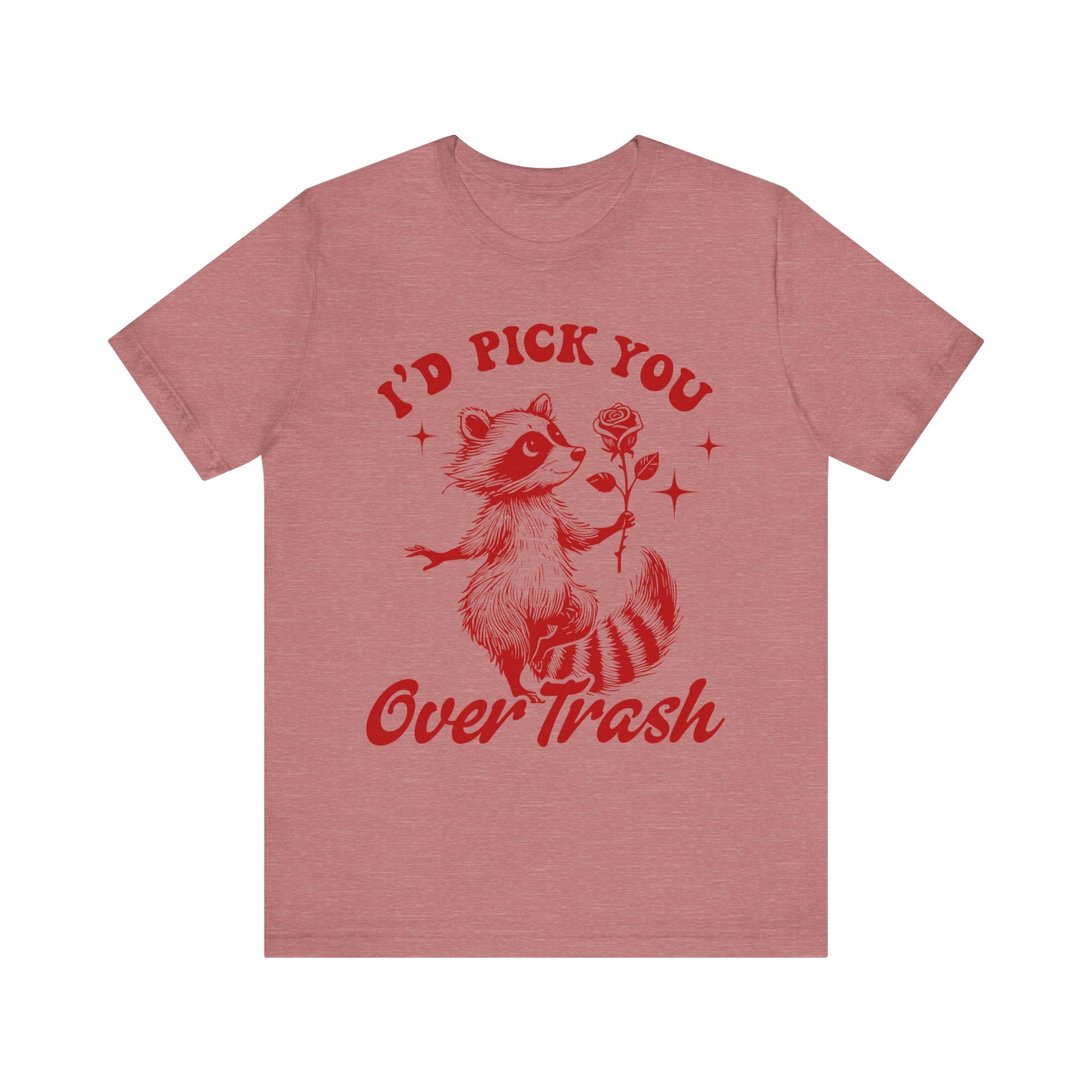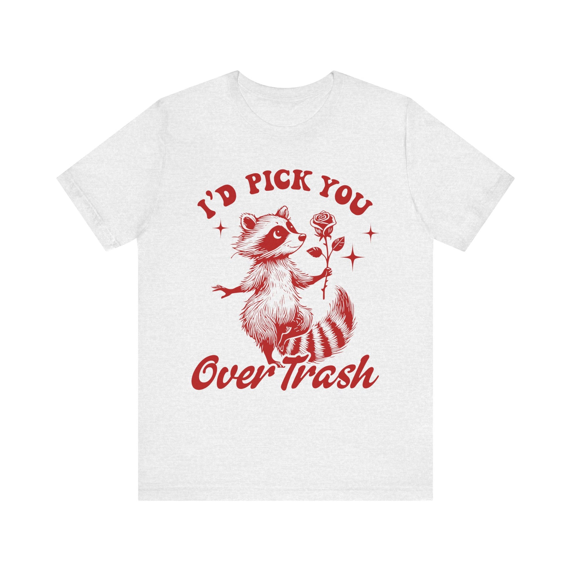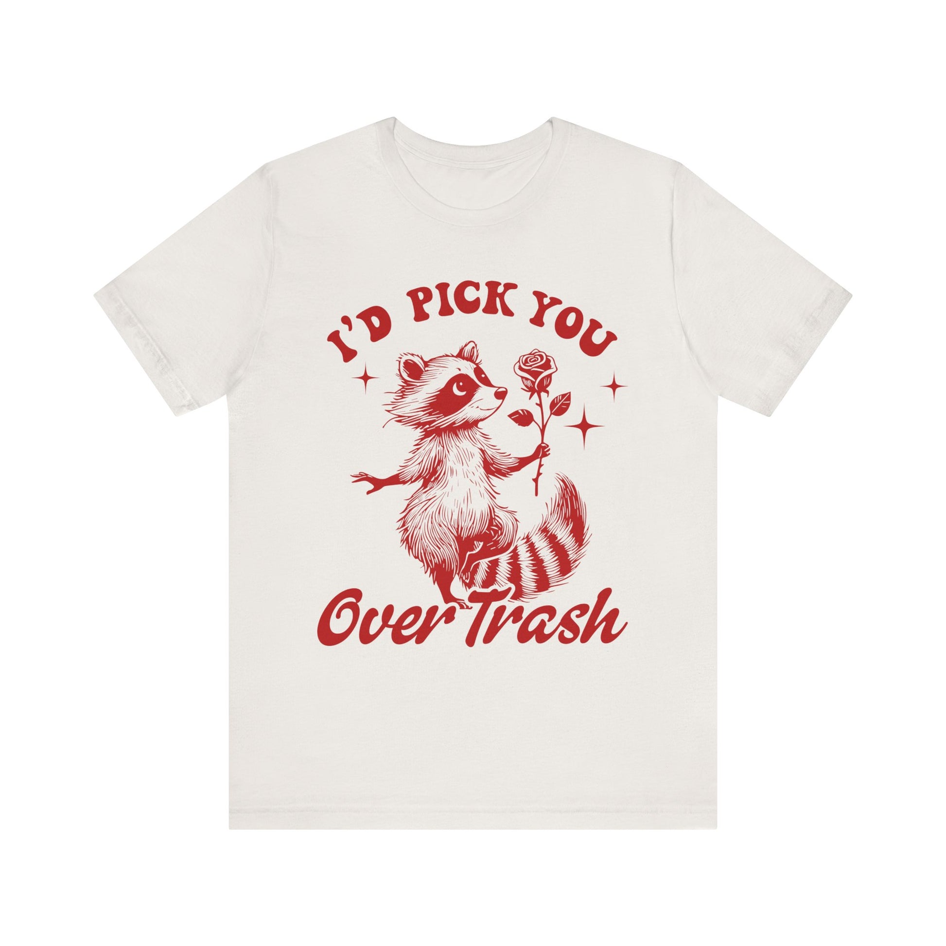 Image of a Raccoon Offering a Rose "I'd Pick YOU over Trash" - Unisex Jersey Short Sleeve Tee