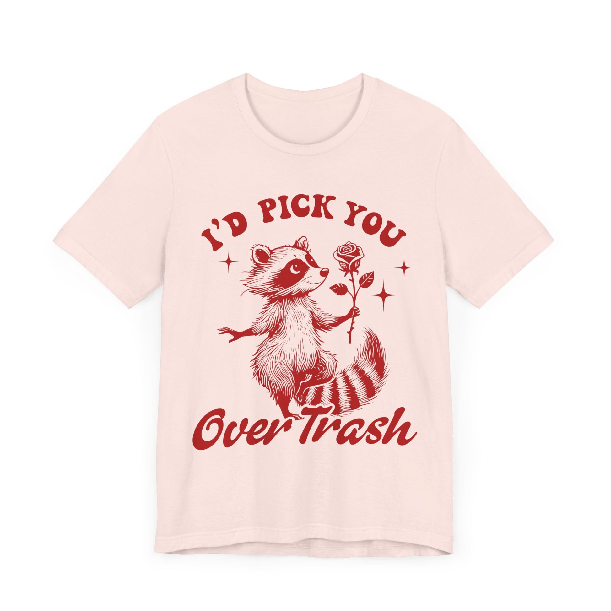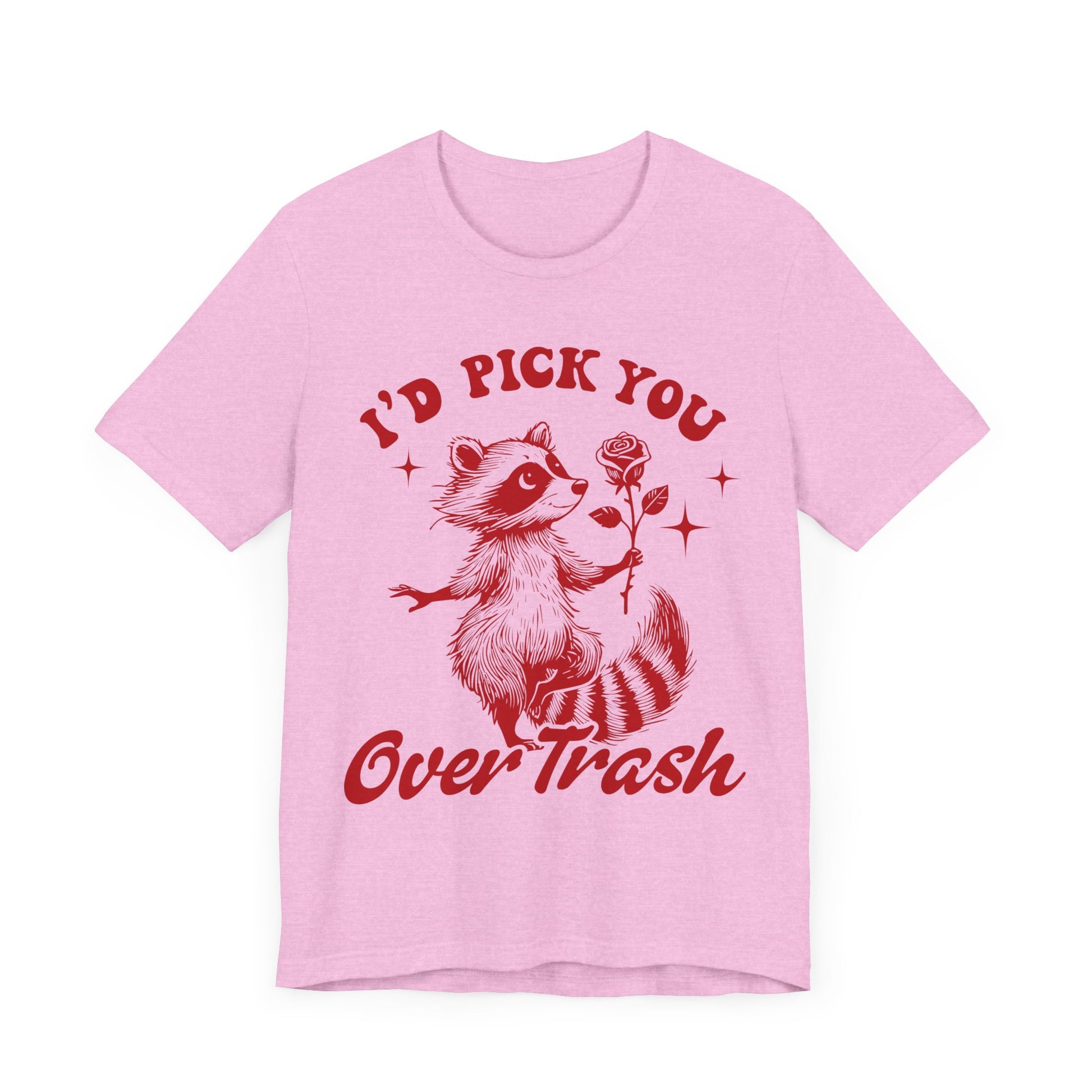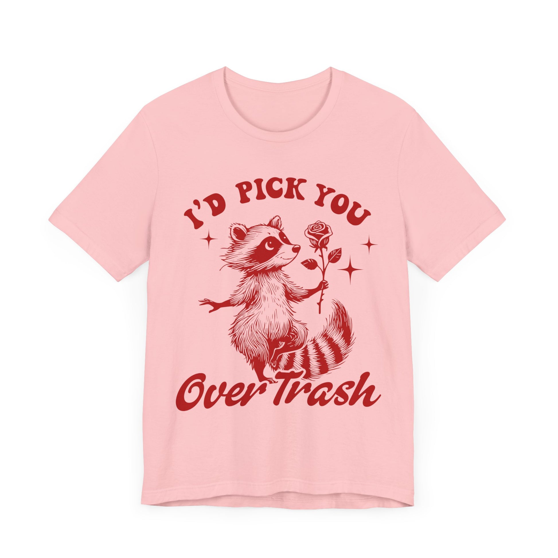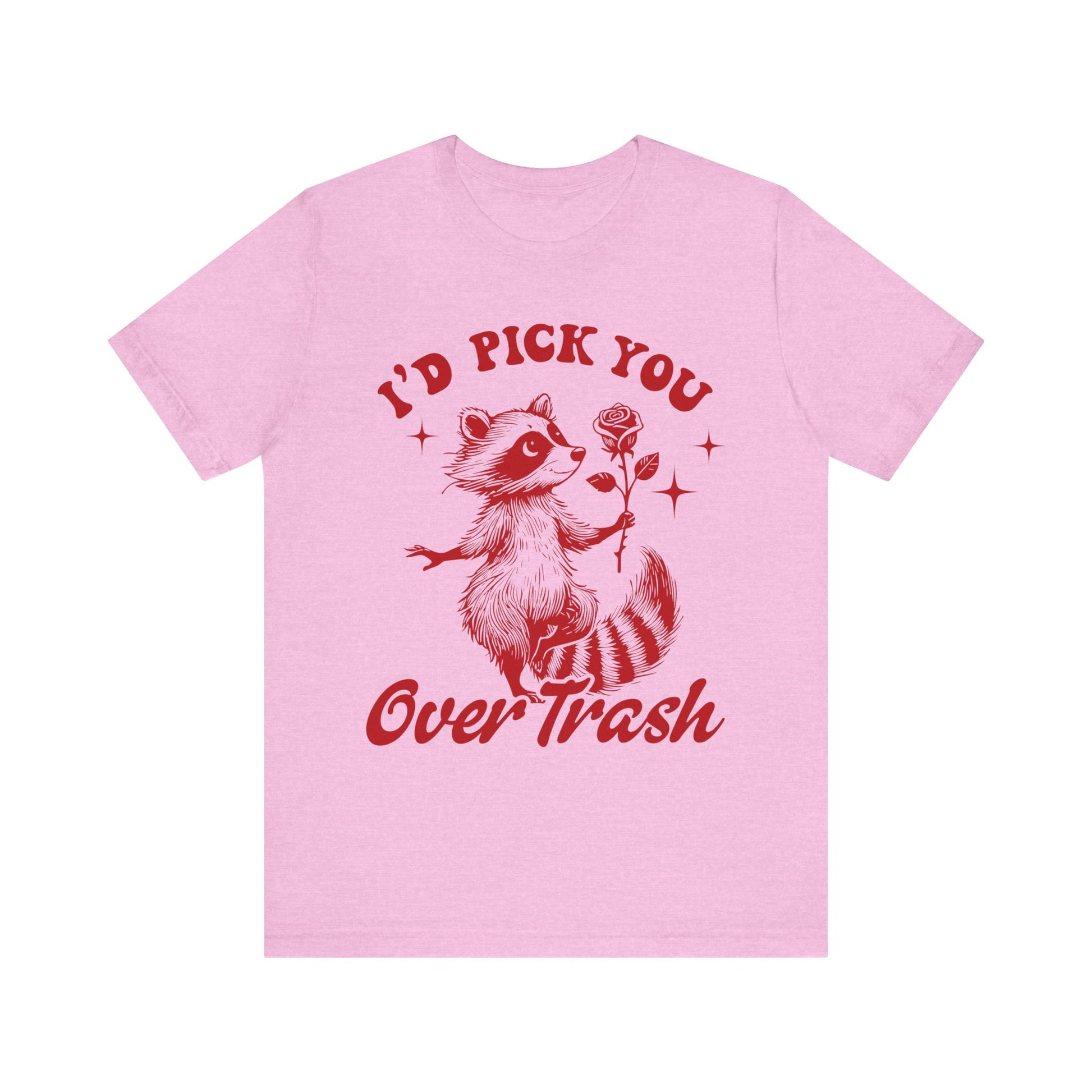 Image of a Raccoon Offering a Rose "I'd Pick YOU over Trash" - Unisex Jersey Short Sleeve Tee