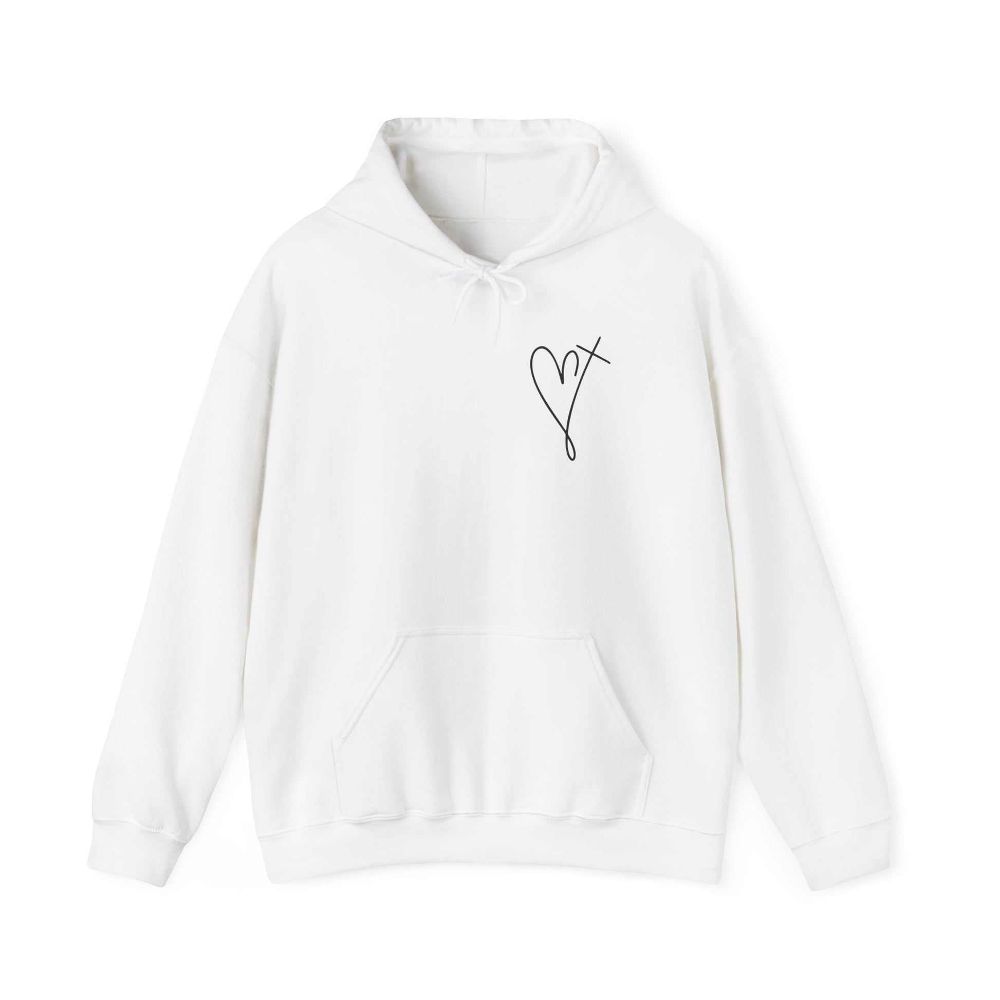 Jesus has my Back saying on back and a heart with a cross inlay on the chest. Introducing a cozy and stylish Hooded Sweatshirt that speaks to the heart. This versatile piece exudes comfort and warmth, perfect for leisurely strolls or cozy nights in. Its soft fabric blend feels great against the skin while keeping you snug. Ideal for anyone looking to express their faith, this sweatshirt is a perfect gift for friends, family, or yourself during special occasions like birthdays, Christmas, or any casual gathering. Whether you're attending a church event or simply enjoying a relaxed day at home, this sweatshirt will enhance your vibe and keep you feeling connected and uplifted.
