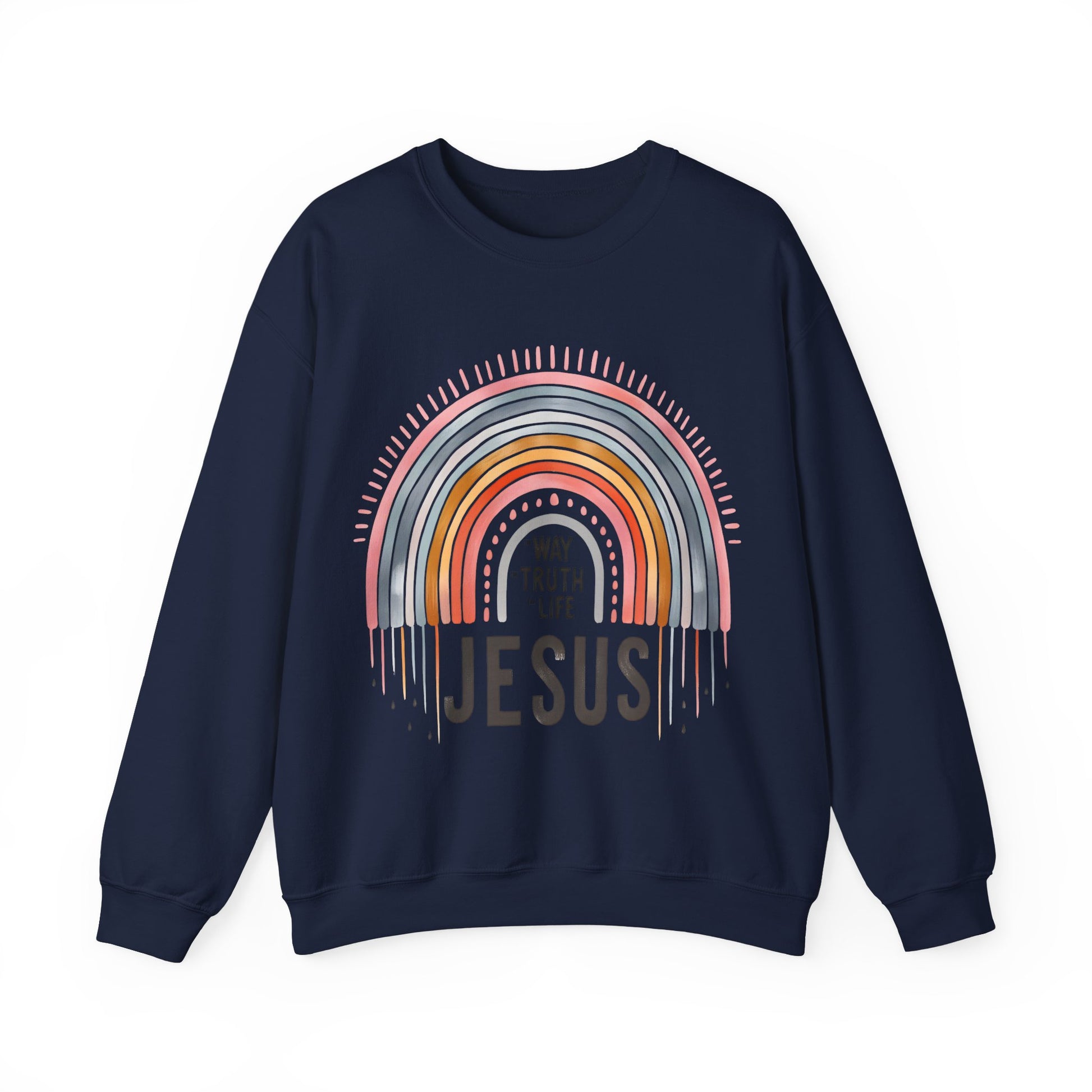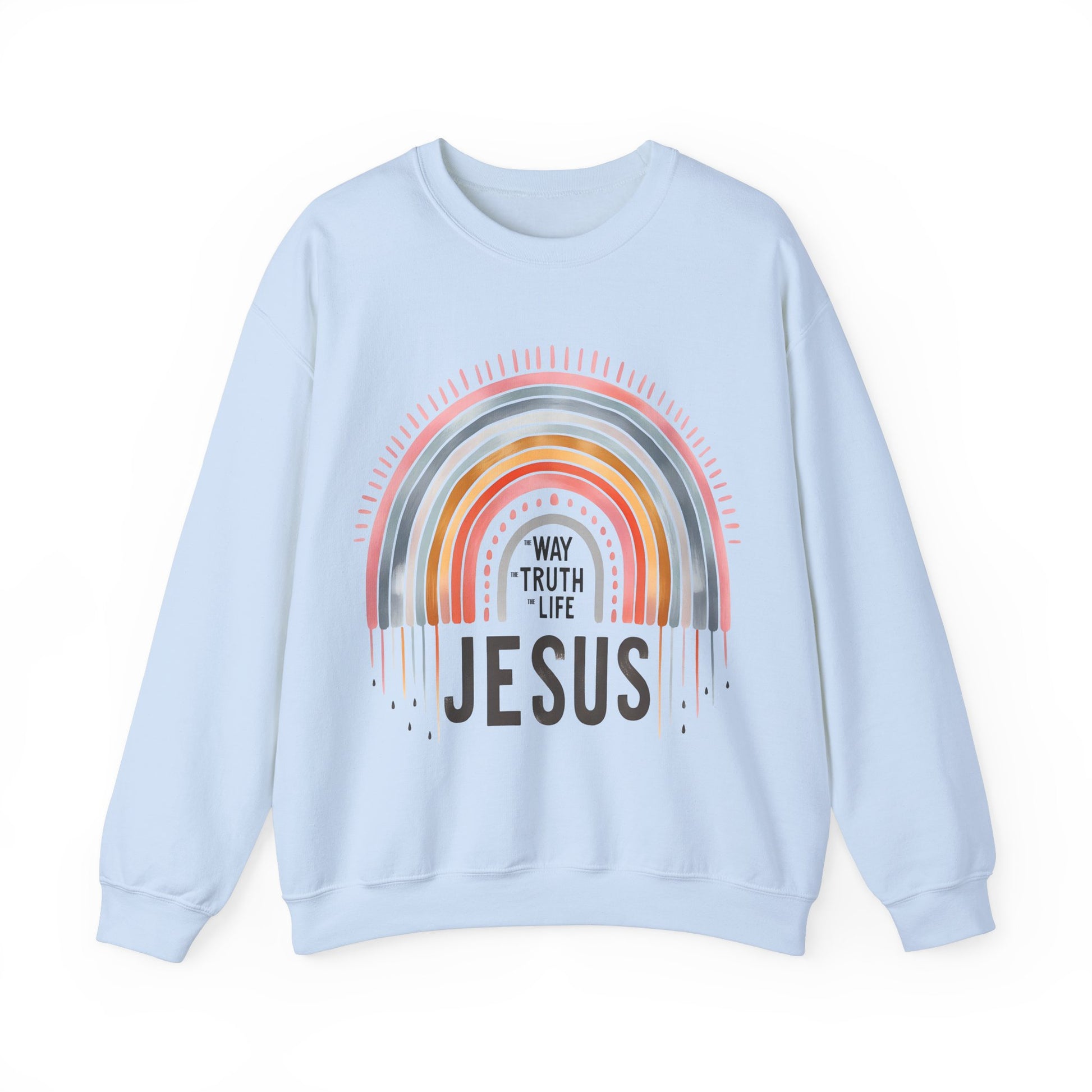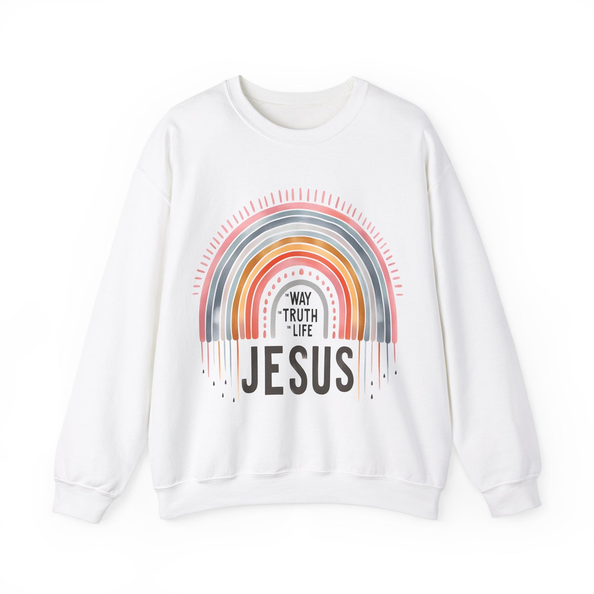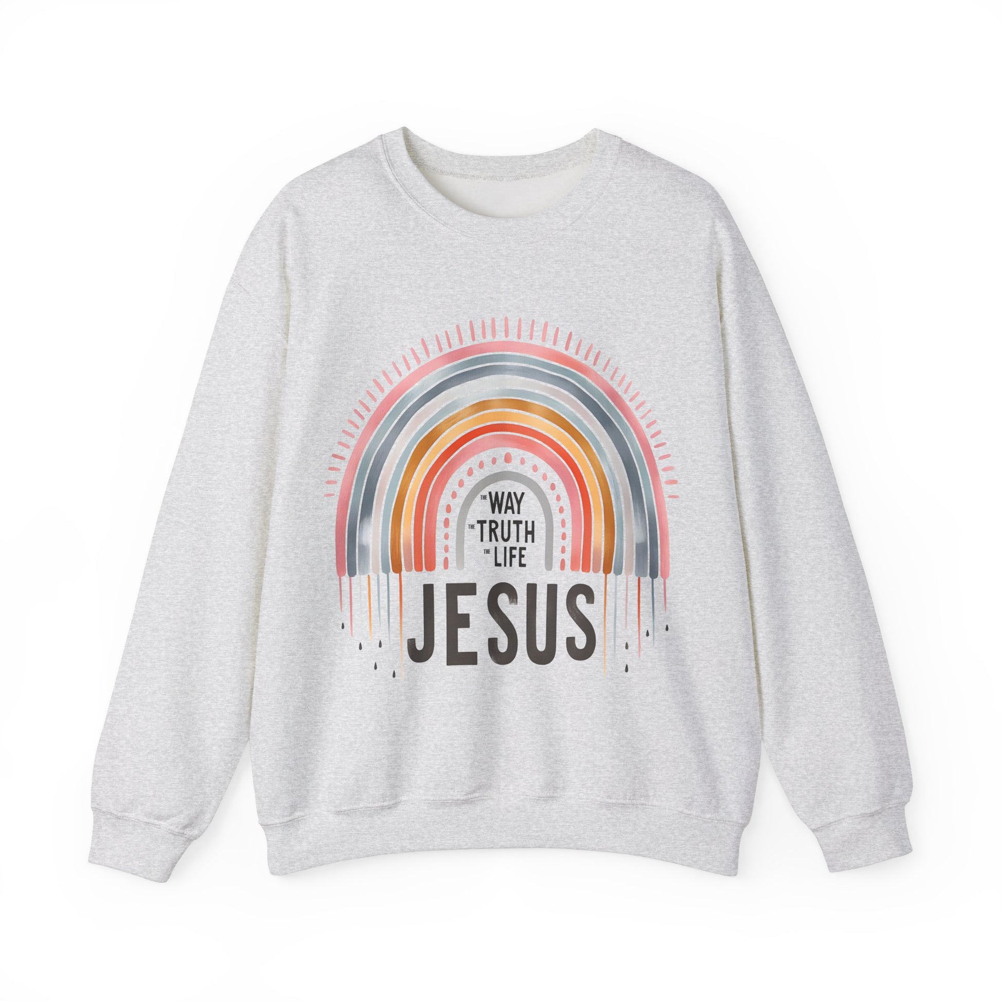 Jesus Rainbow Sweatshirt, Cozy Unisex Crewneck, Christian Apparel, Faith Sweatshirt, Gift for Believers, Inspirational Fashion