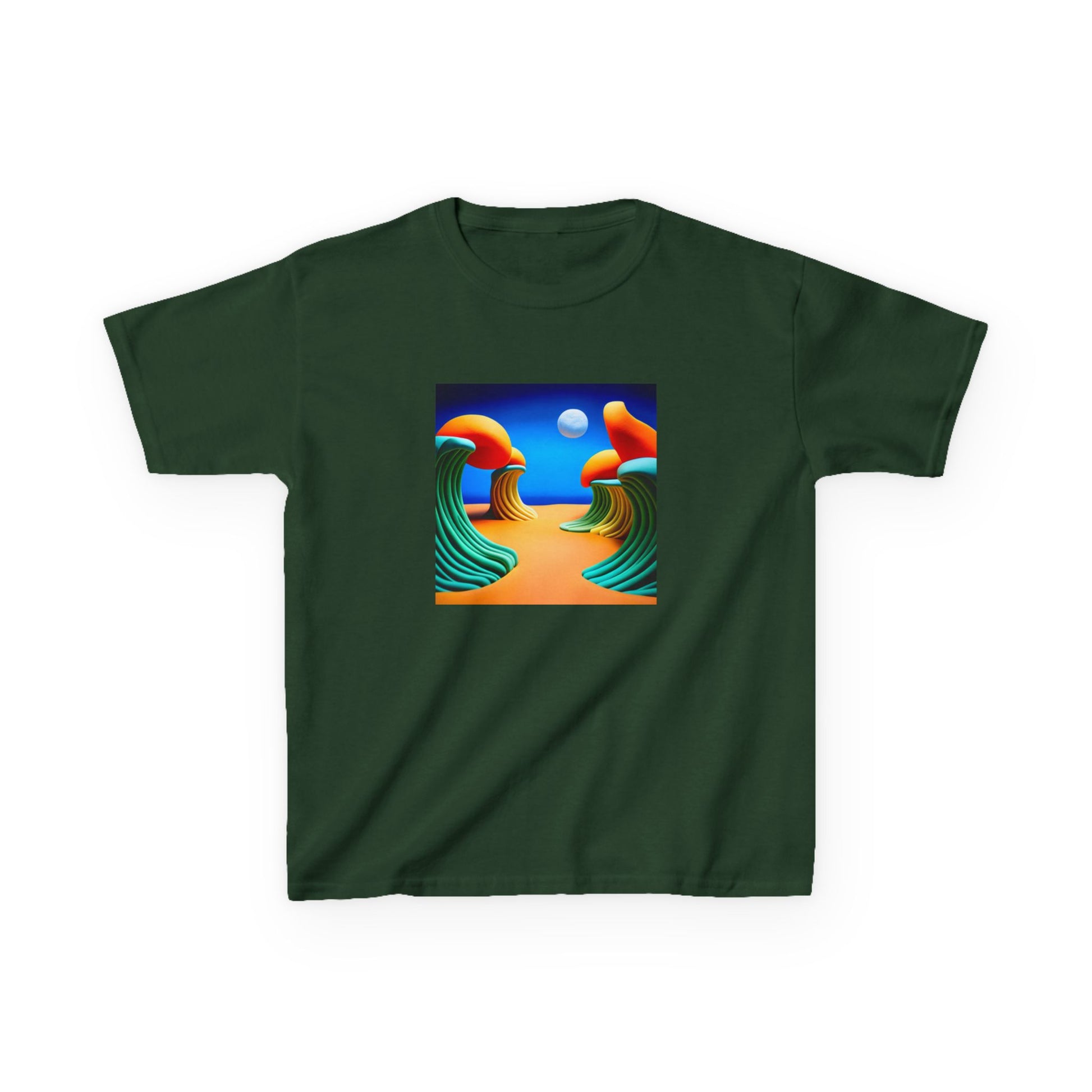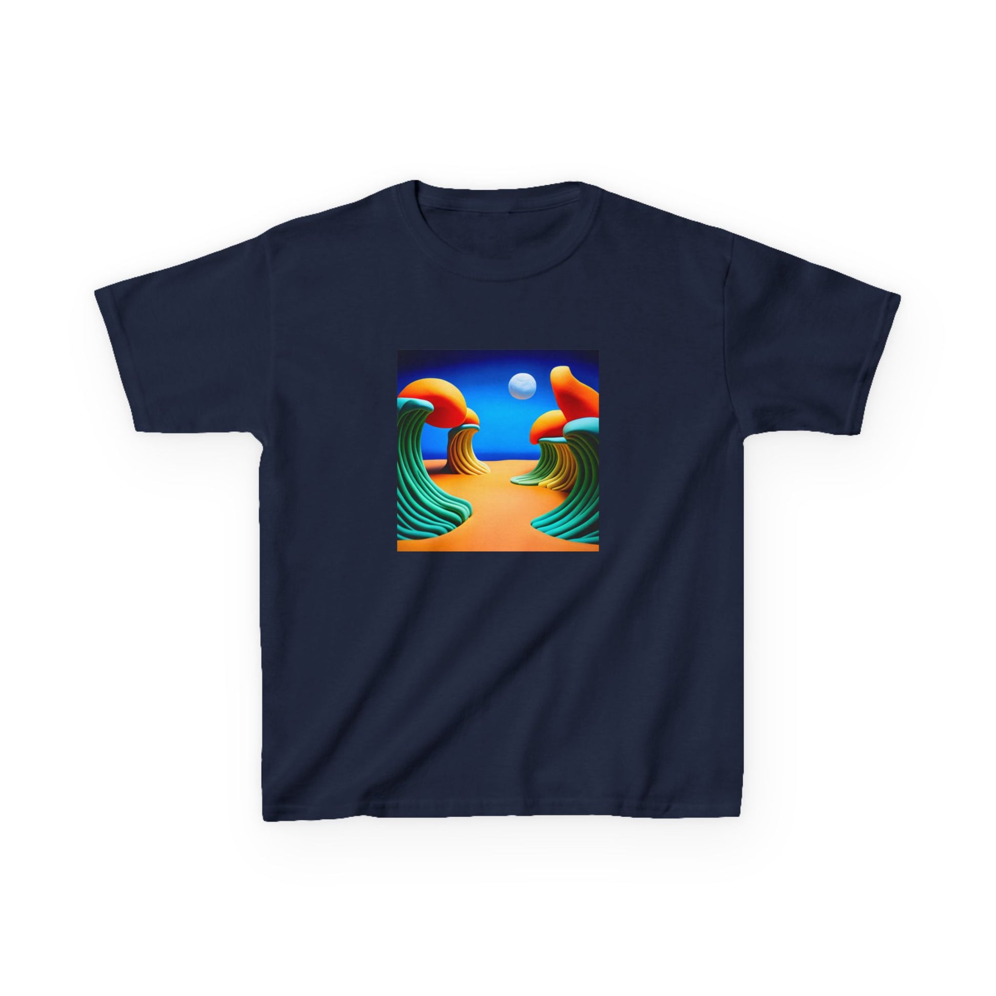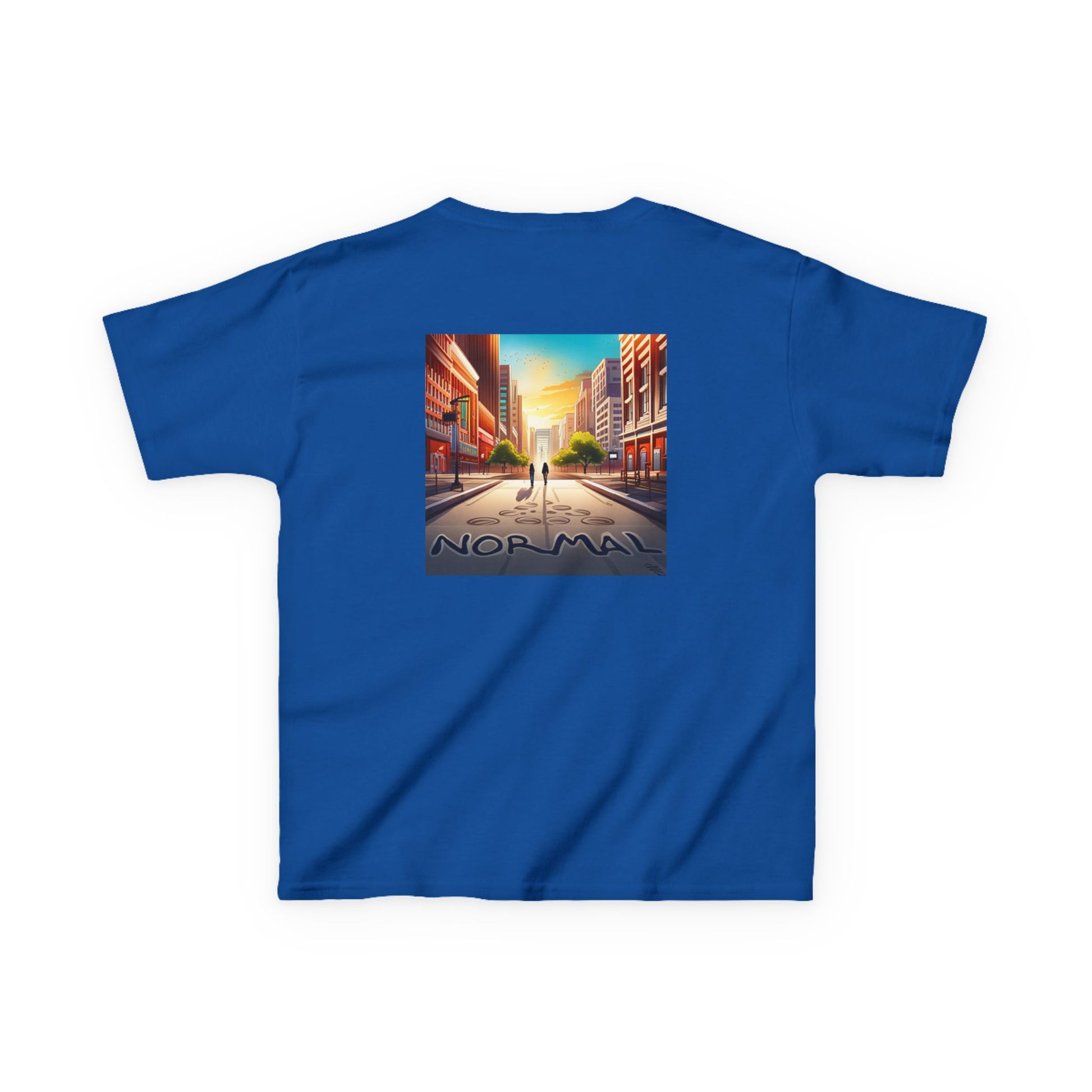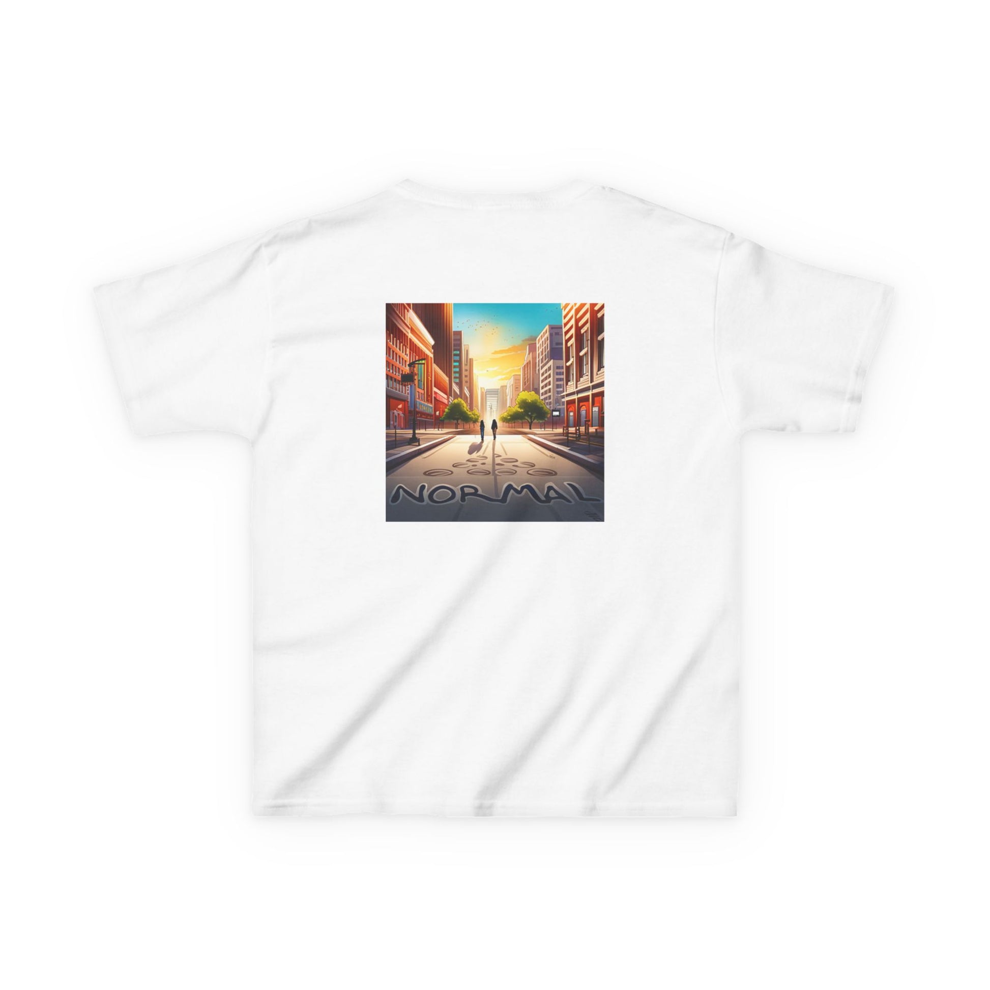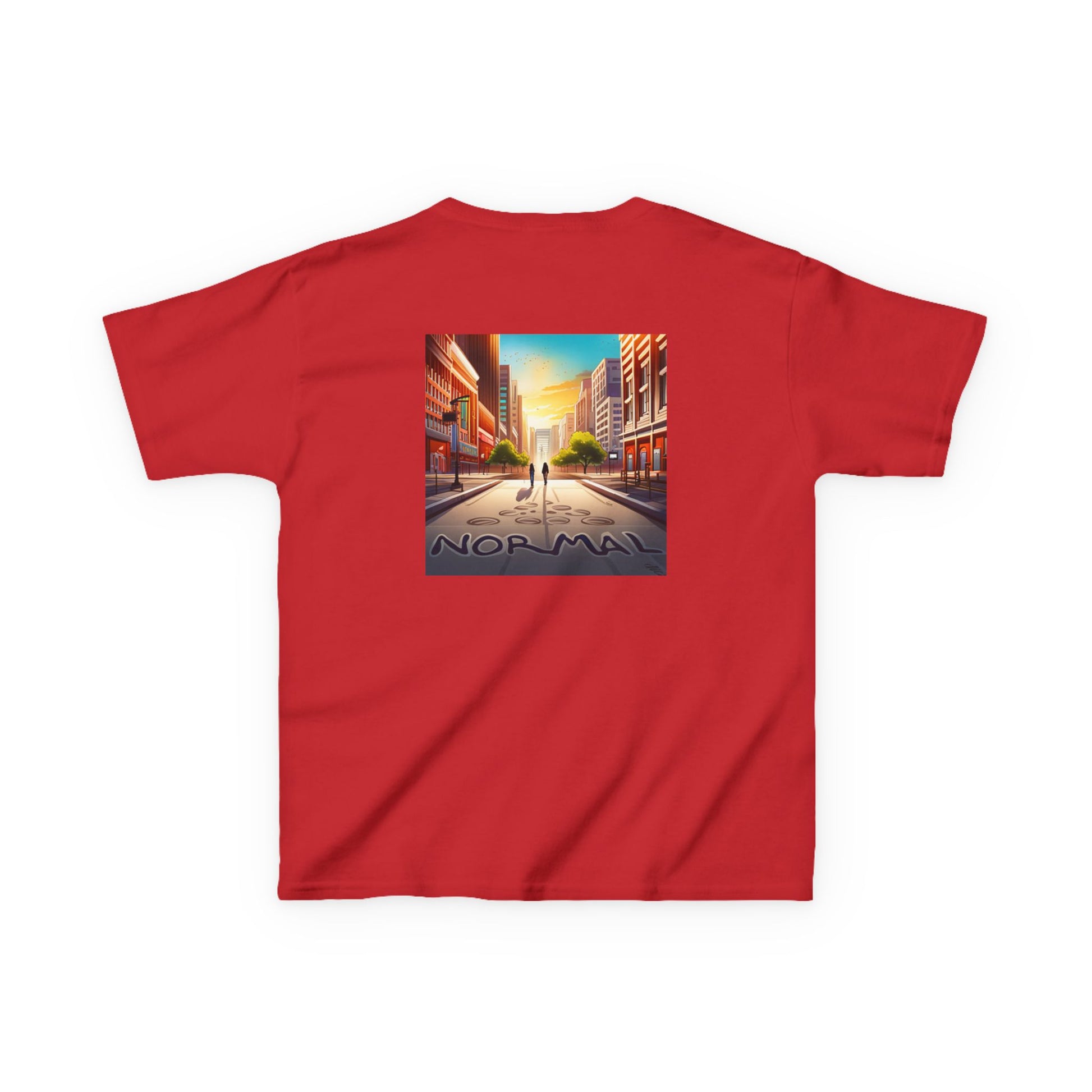 The kids heavy cotton tee is perfect for everyday use. The fabric is 100% cotton for solid colors. Polyester is included for heather-color variants. These fabrics are prime materials for printing. The shoulders have twill tape for improved durability. The collar is curl resistant due to ribbed knitting. There are no seams along the sides.