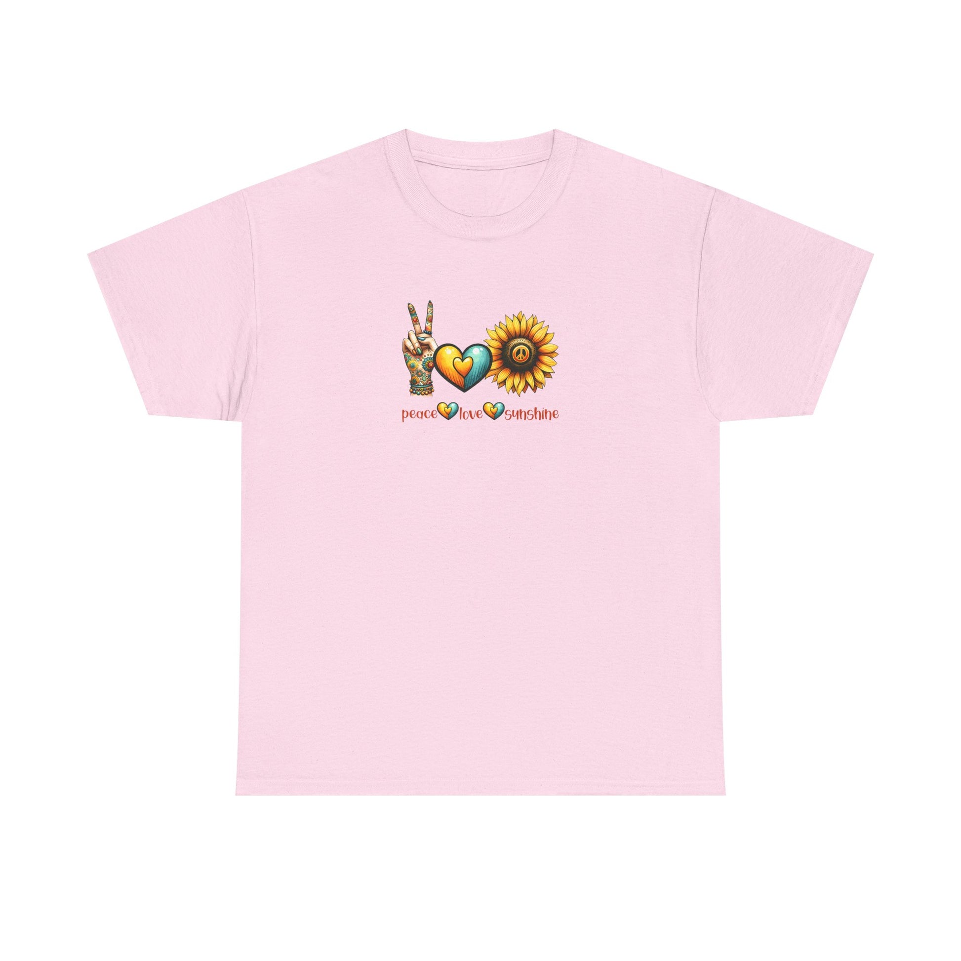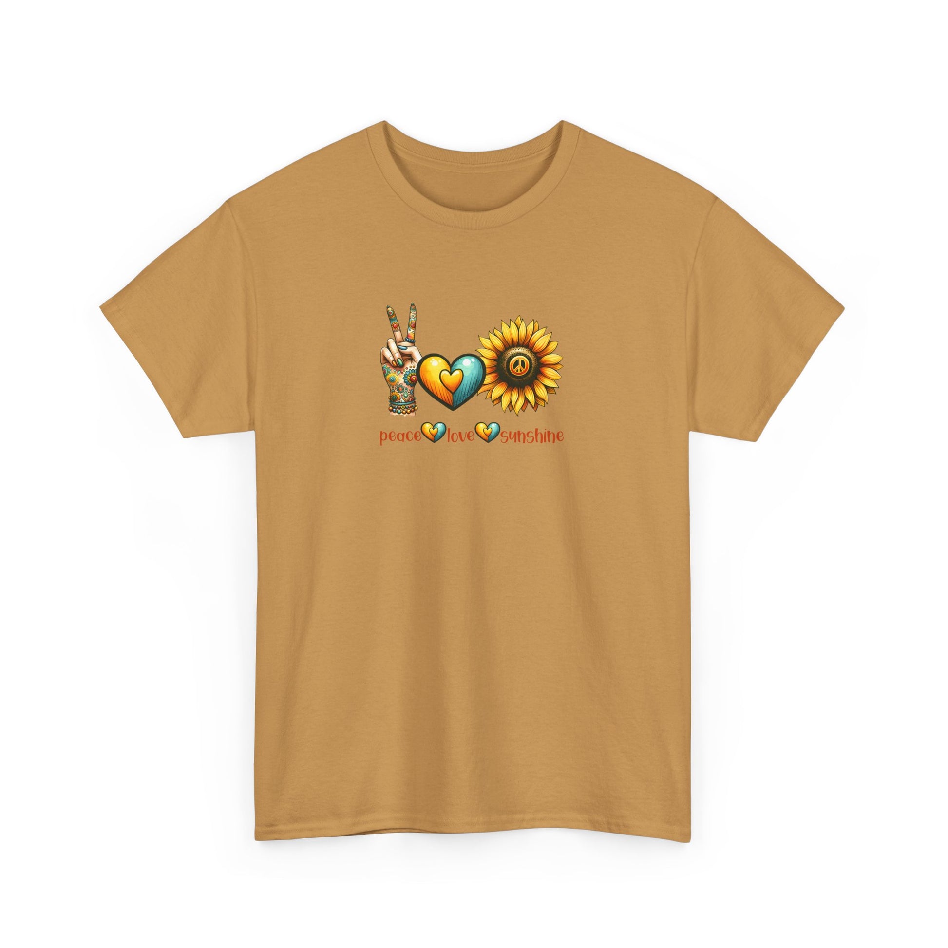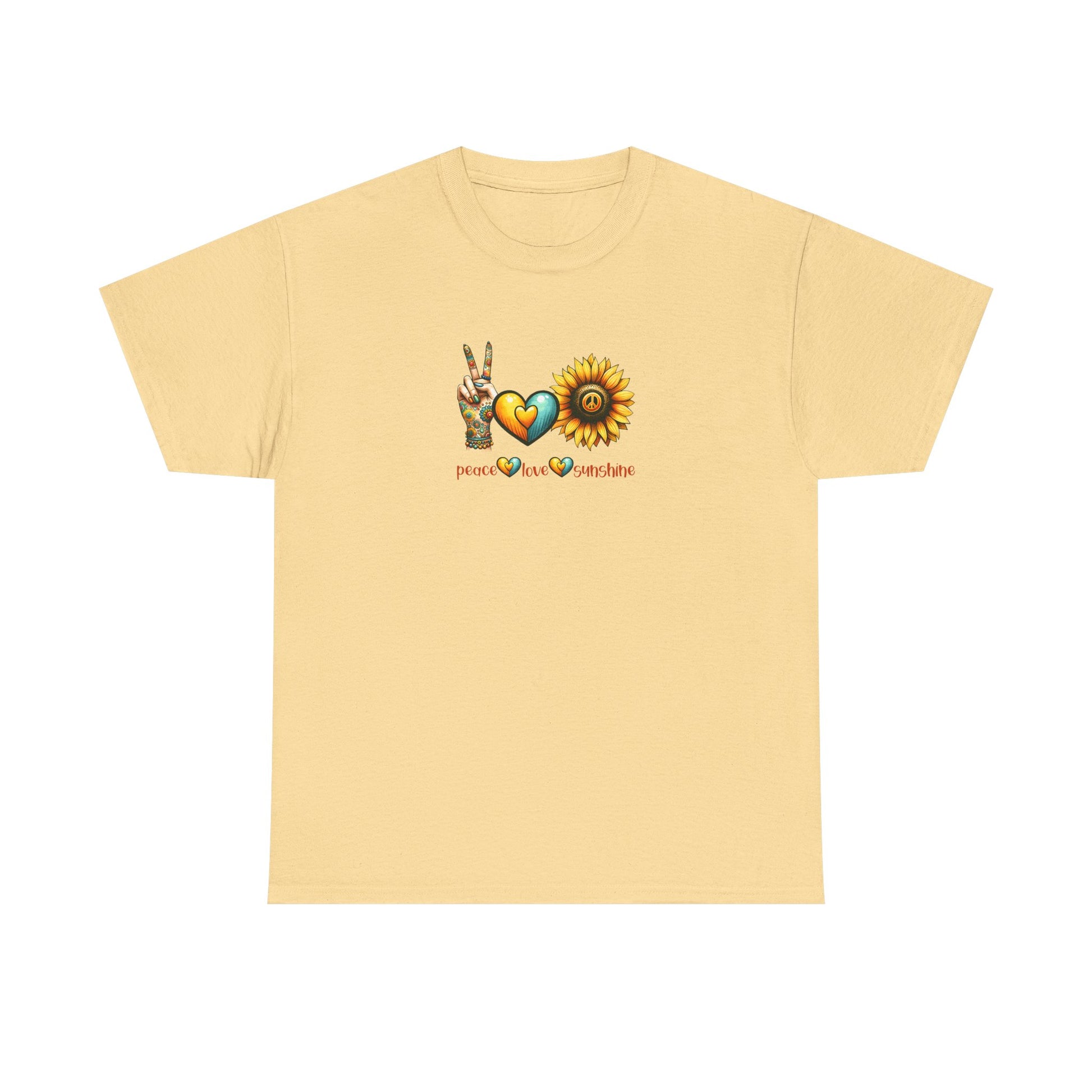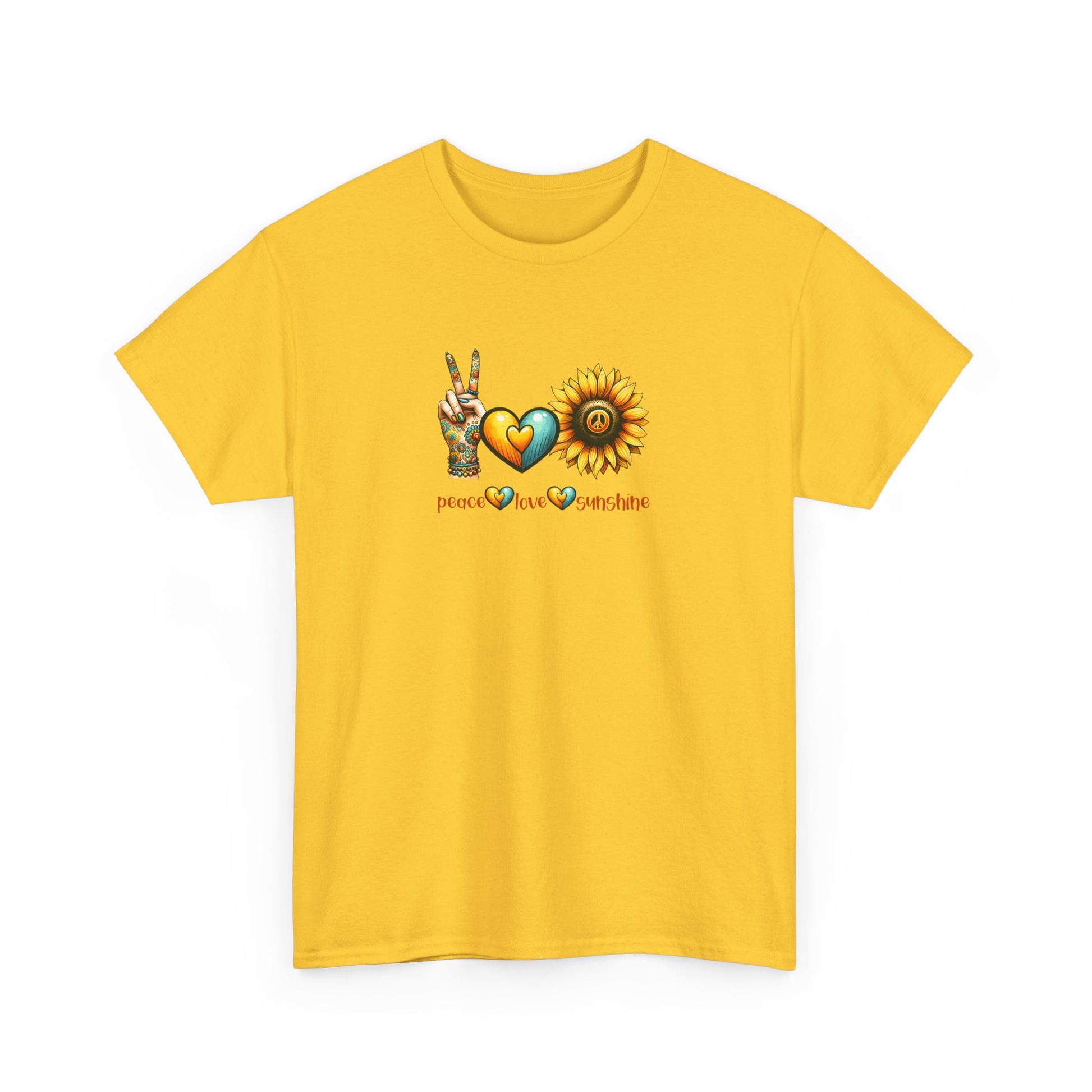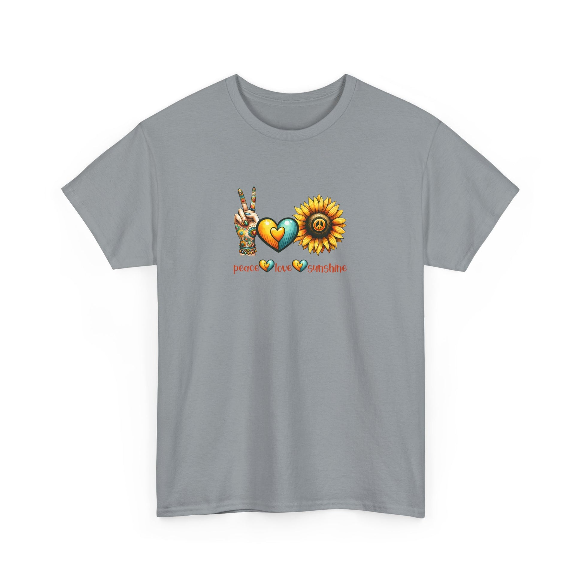 Peace Love Sunshine Unisex Heavy Cotton Tee, Vintage Graphic T-Shirt, Retro Vibe, Summer Wardrobe, Perfect Gift for Friends, Festivals