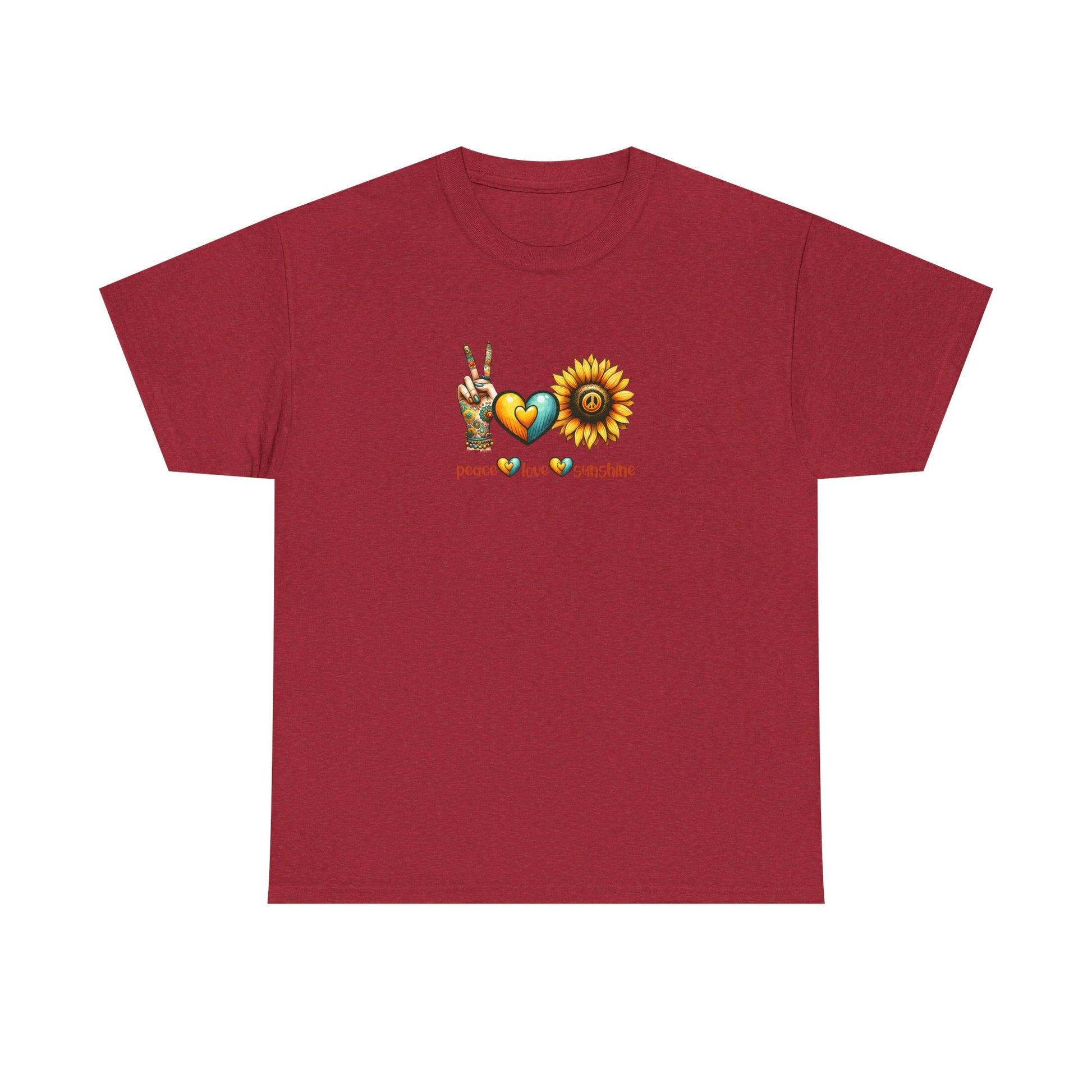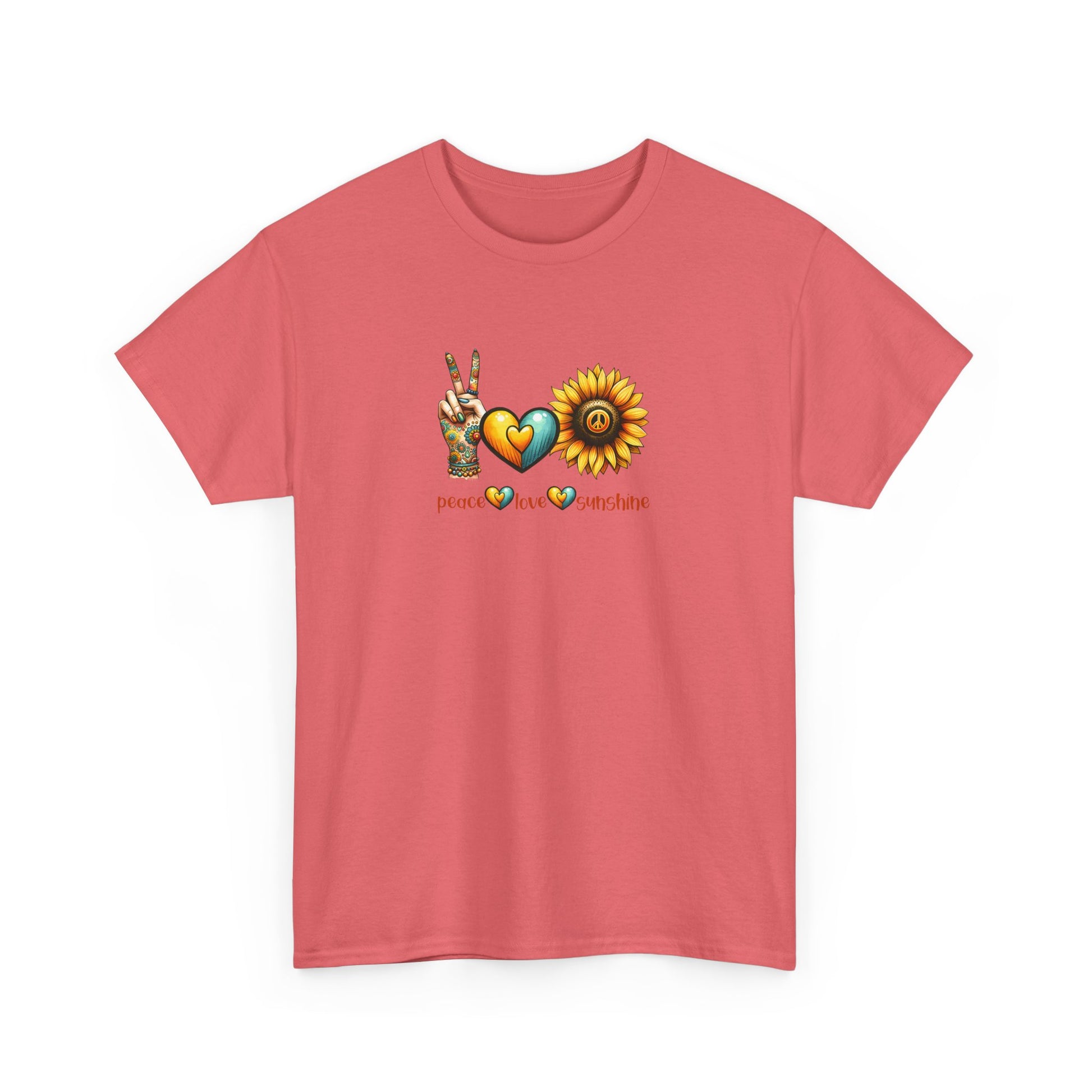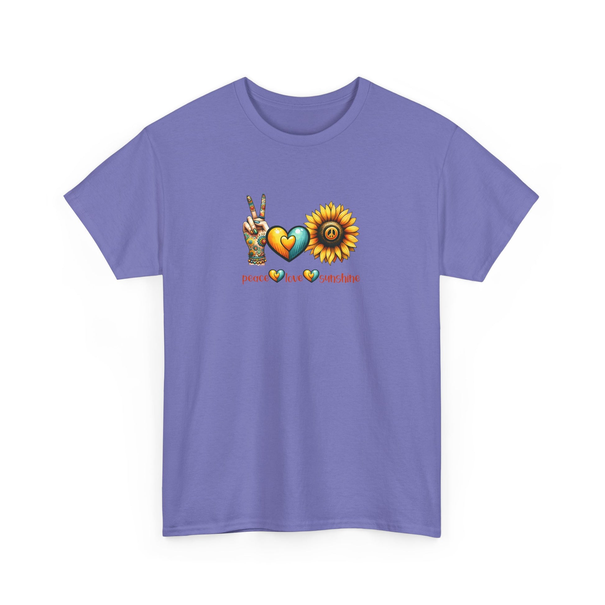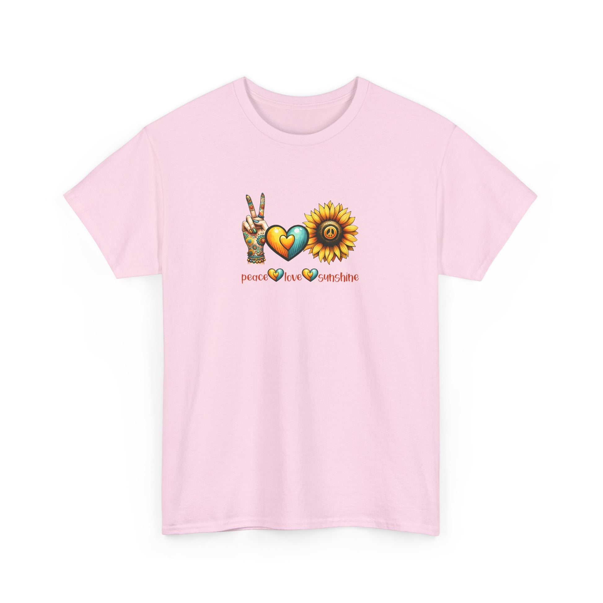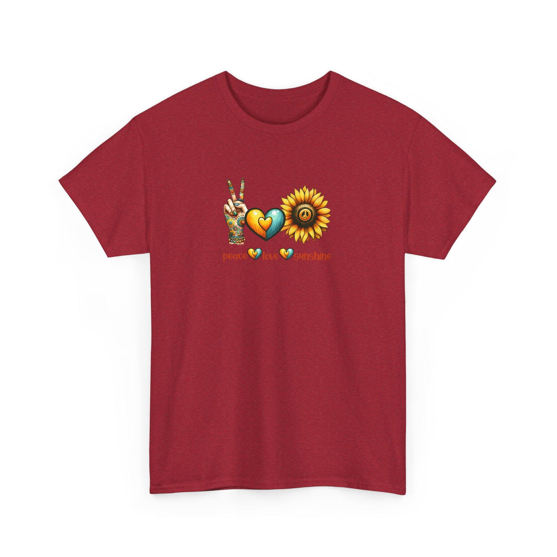 Peace Love Sunshine Unisex Heavy Cotton Tee, Vintage Graphic T-Shirt, Retro Vibe, Summer Wardrobe, Perfect Gift for Friends, Festivals