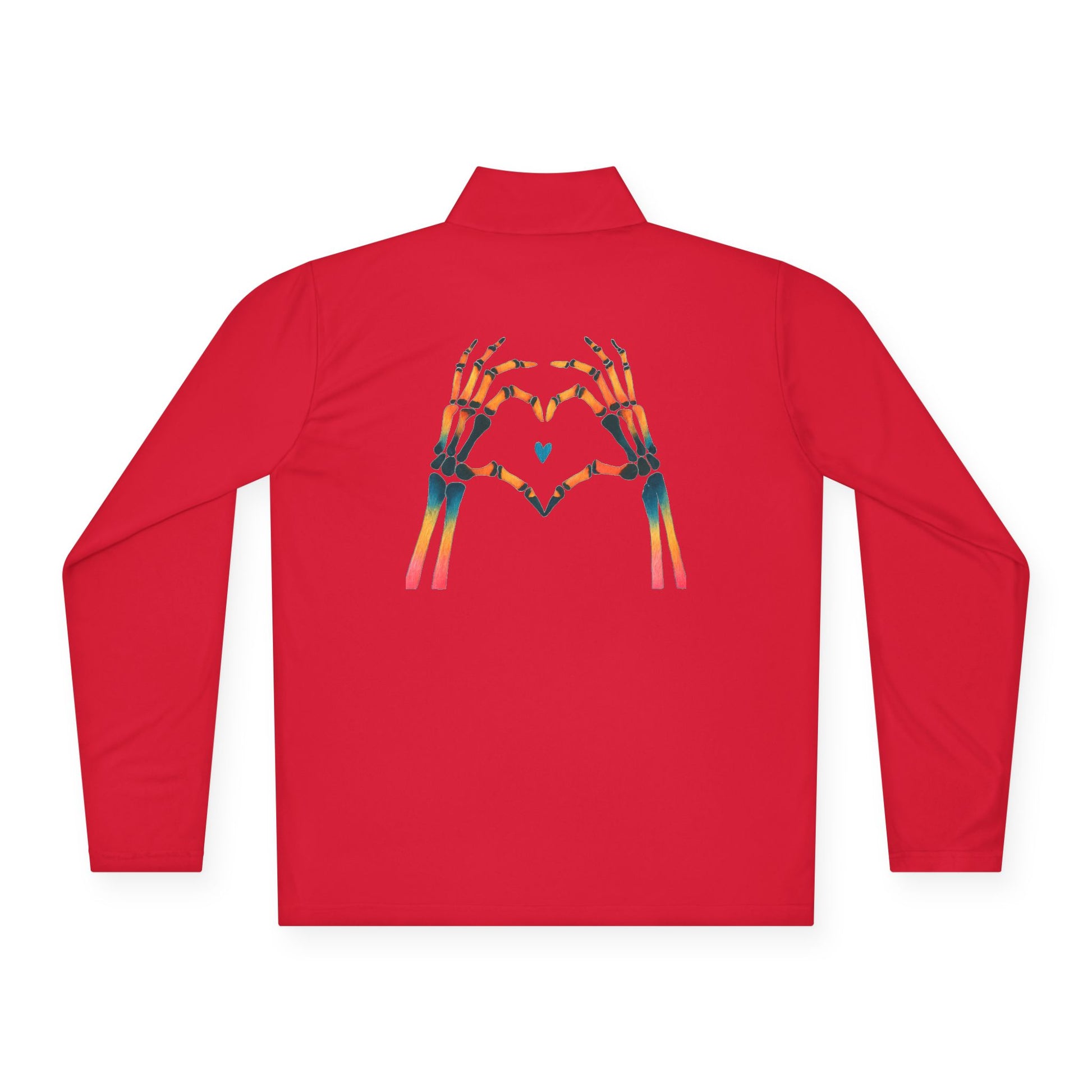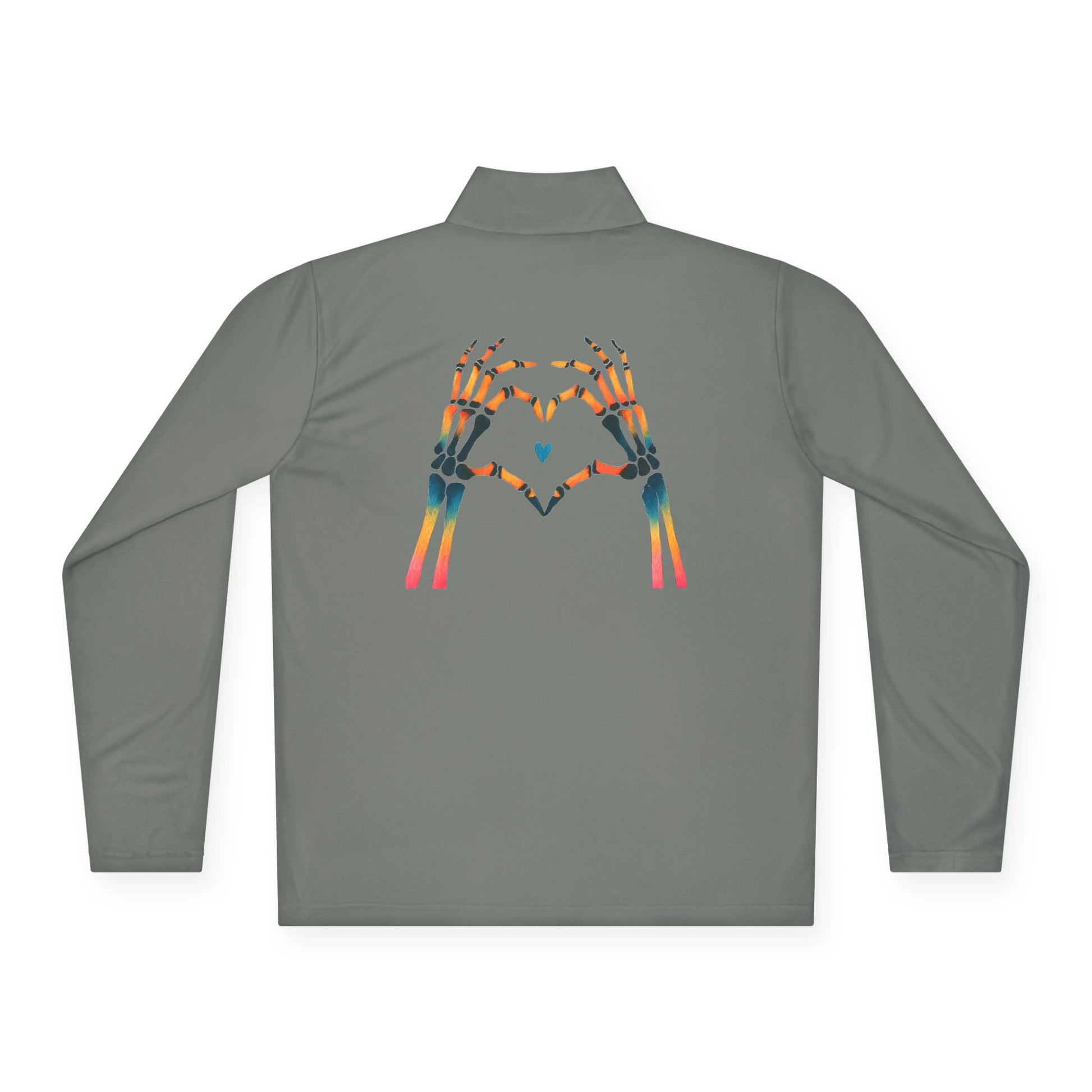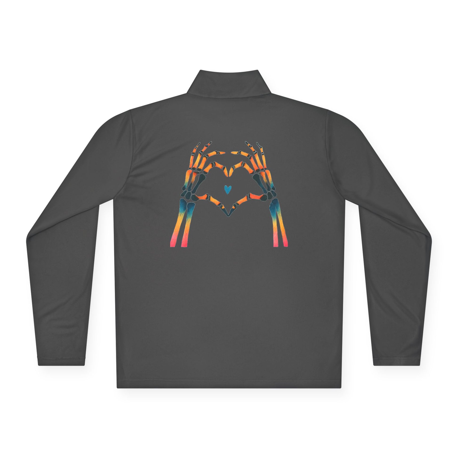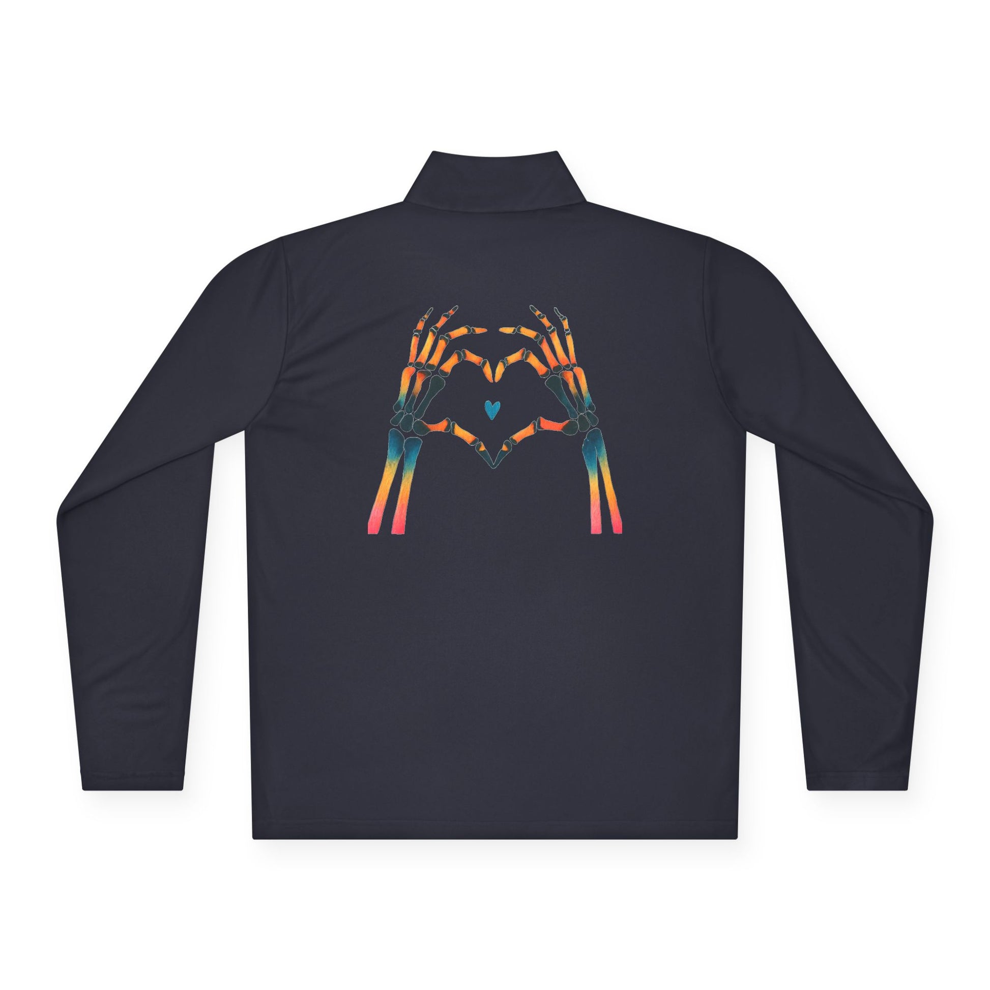 rainbow bones hands making heart shape. Simple Unisex Quarter-Zip Pullover