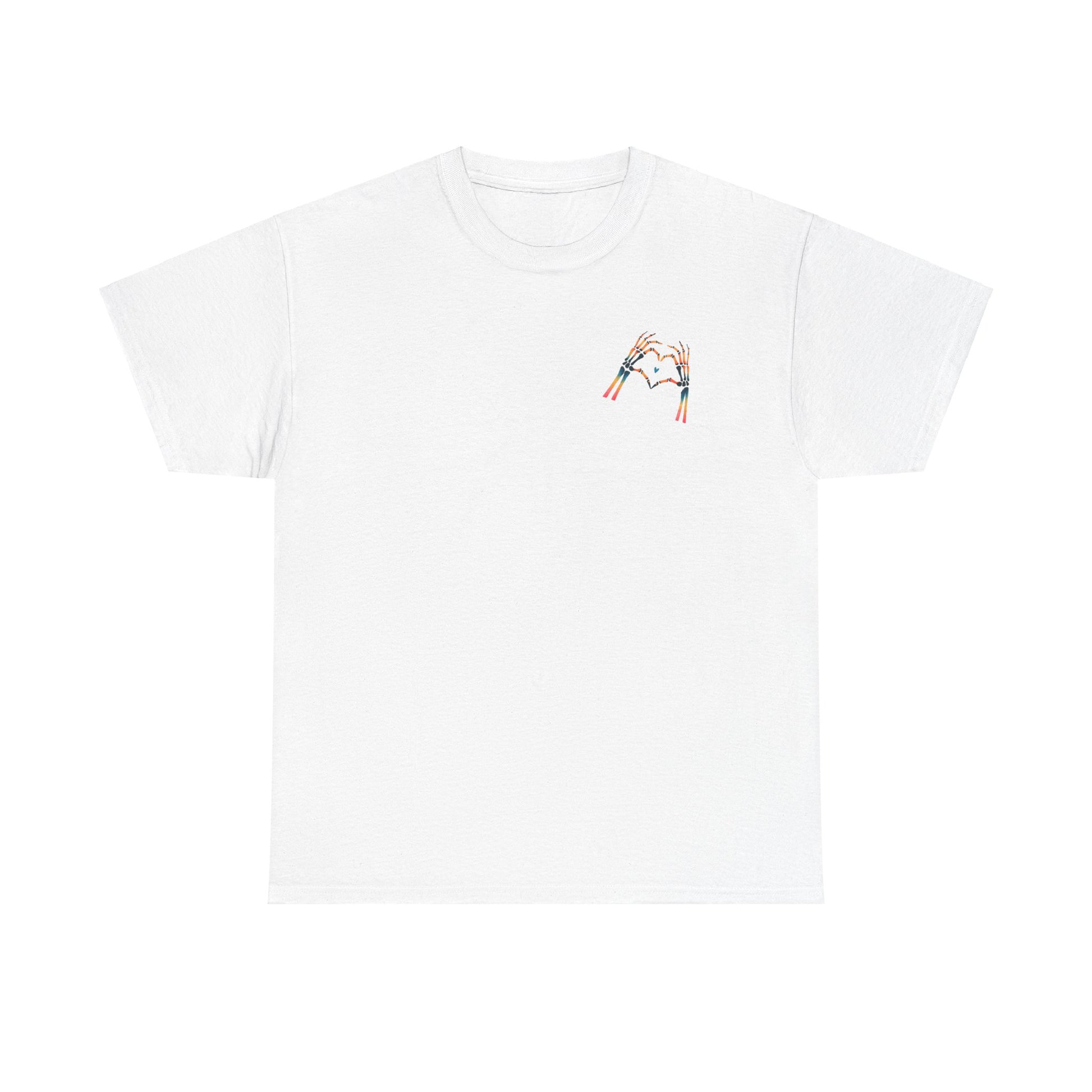 A Valentine's Day themed Tee featuring a raccoon holding up metal hand signs with the title 'unhinged and feral'. This Tee gives off a playful and edgy vibe, perfect for those who want to make a statement. Ideal for adults looking to celebrate Valentine's Day in a unique way.