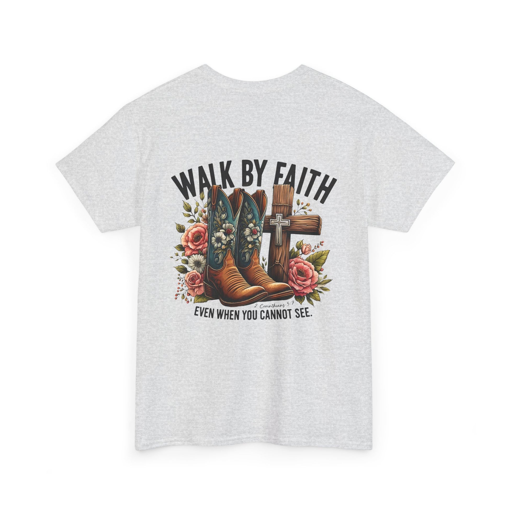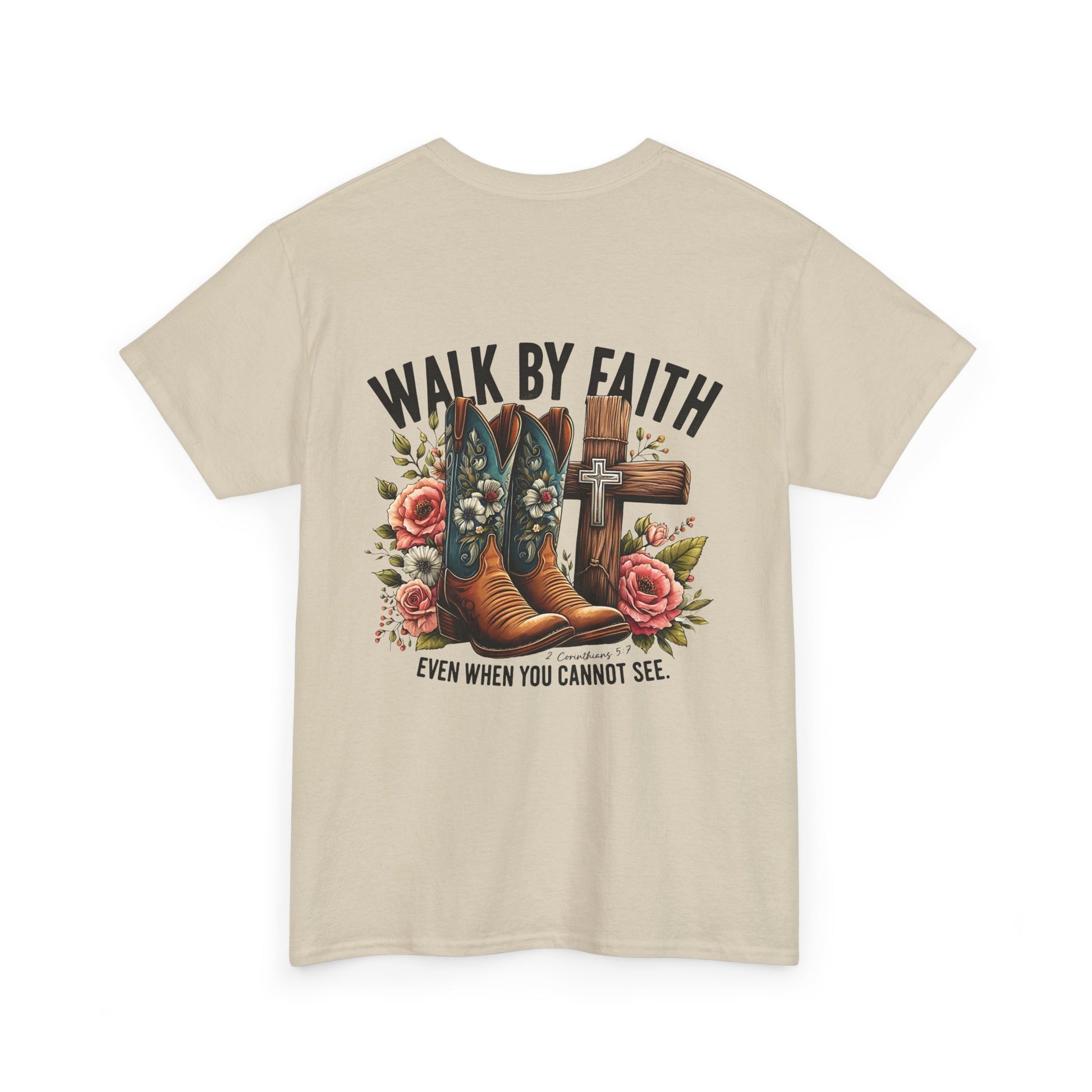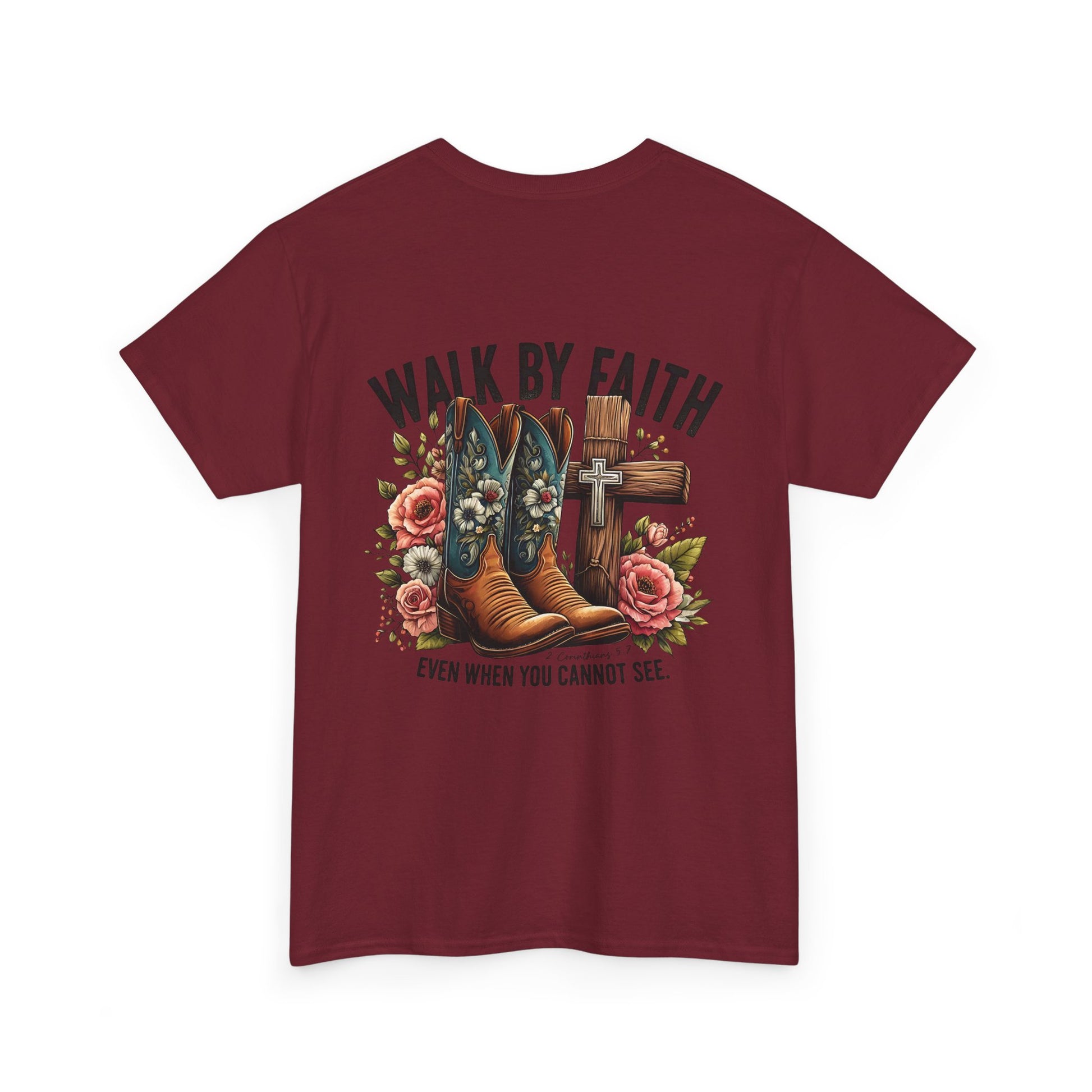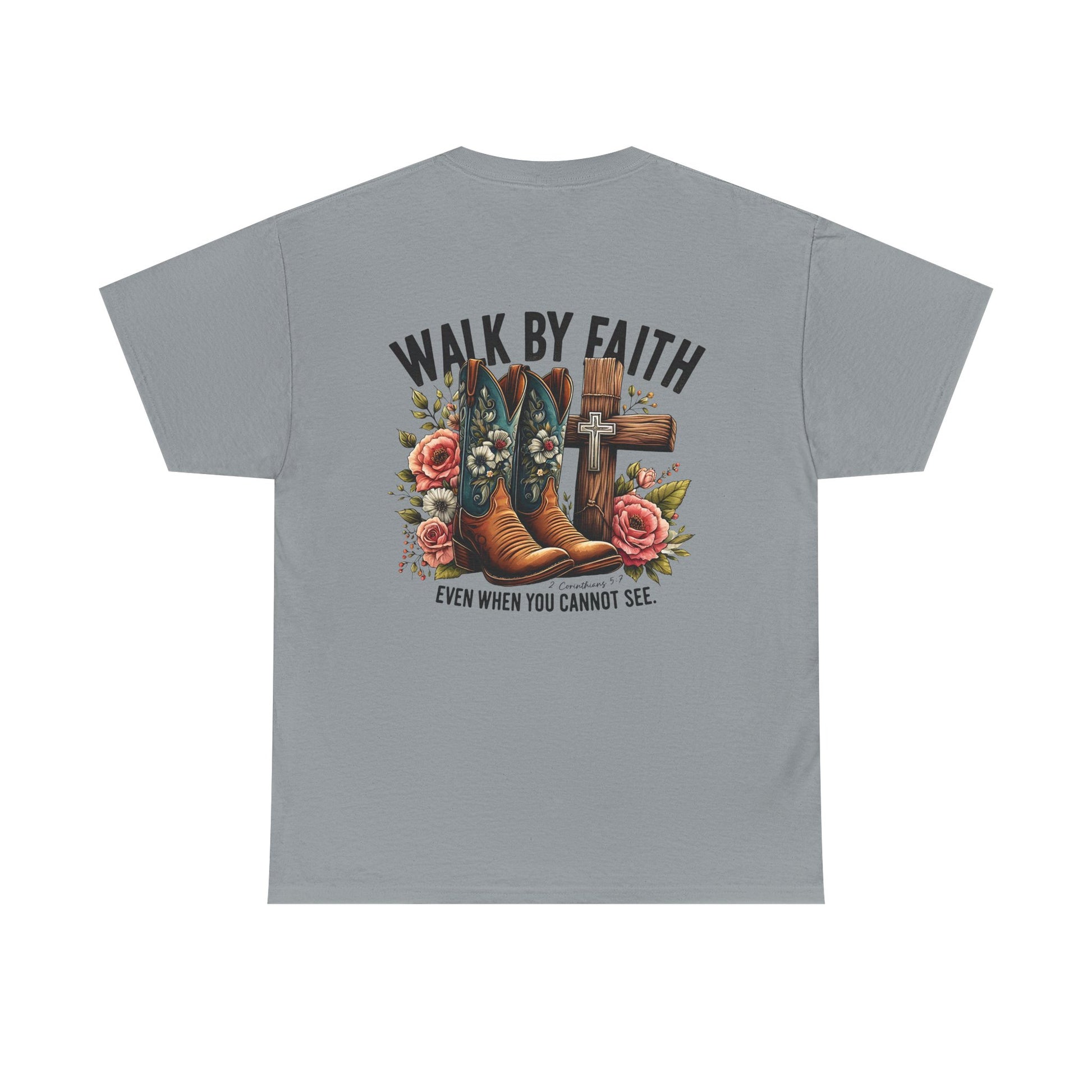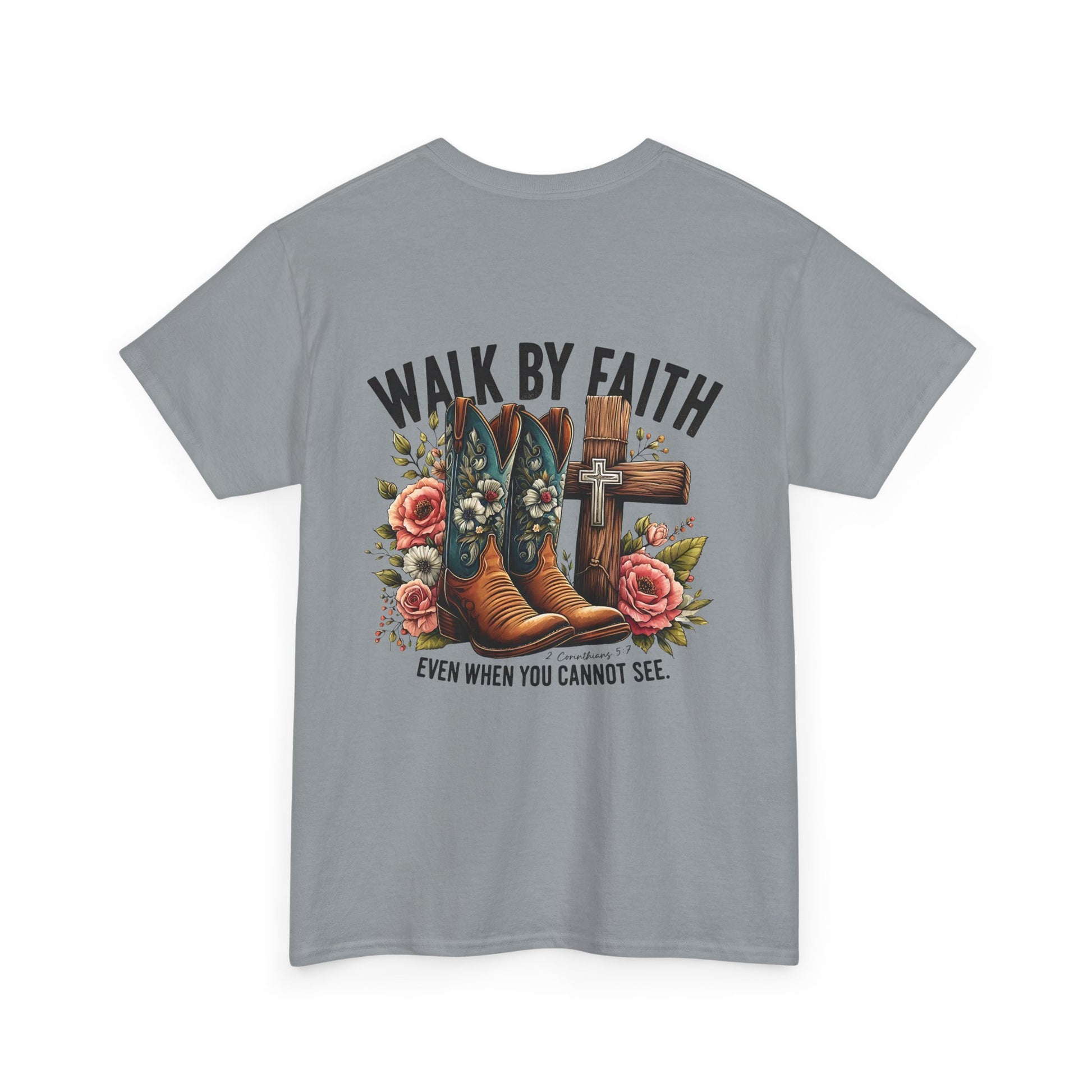 Walk by Faith Unisex Heavy Cotton Tee - Inspirational Cowboy Boots Shirt, Faith-Based Apparel, Christian Gift, Casual Everyday Wear,