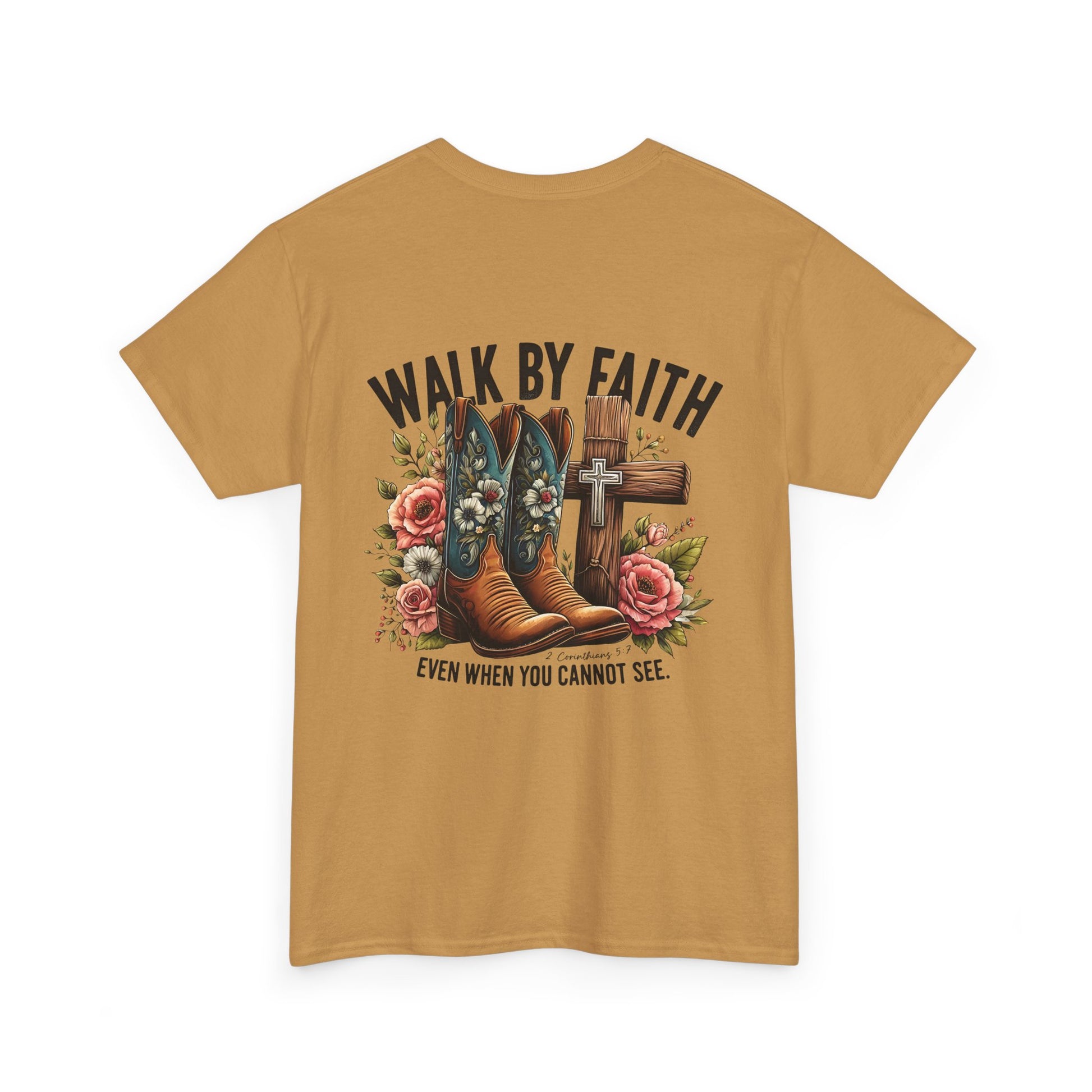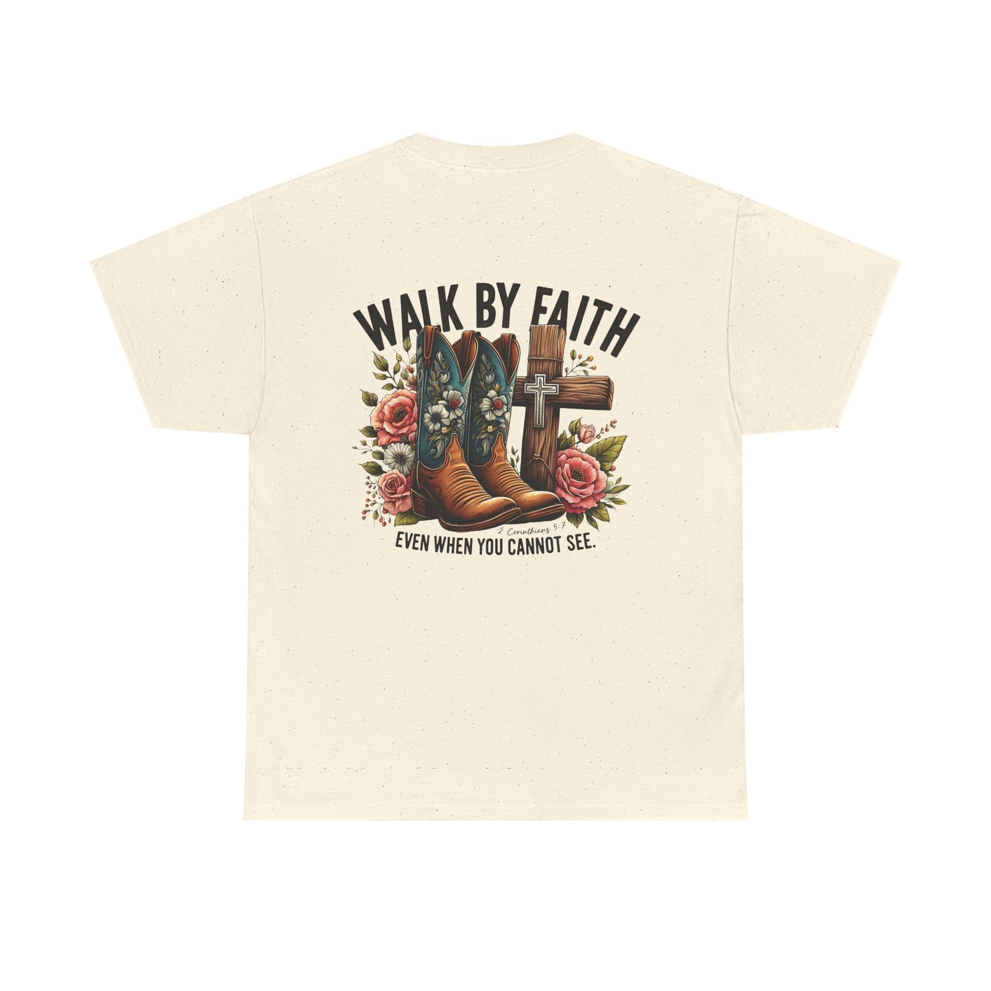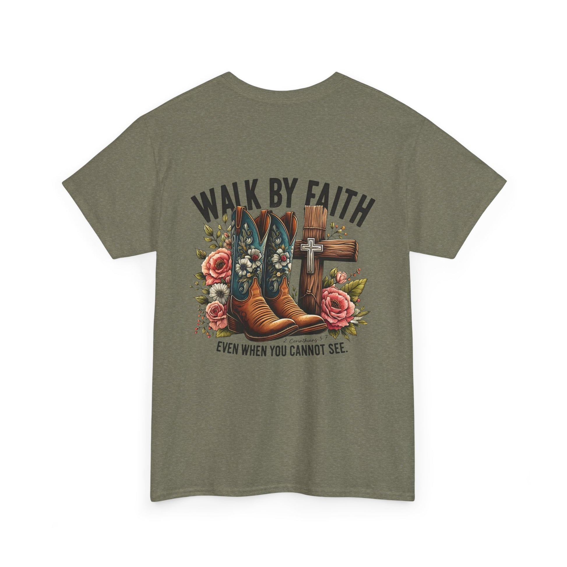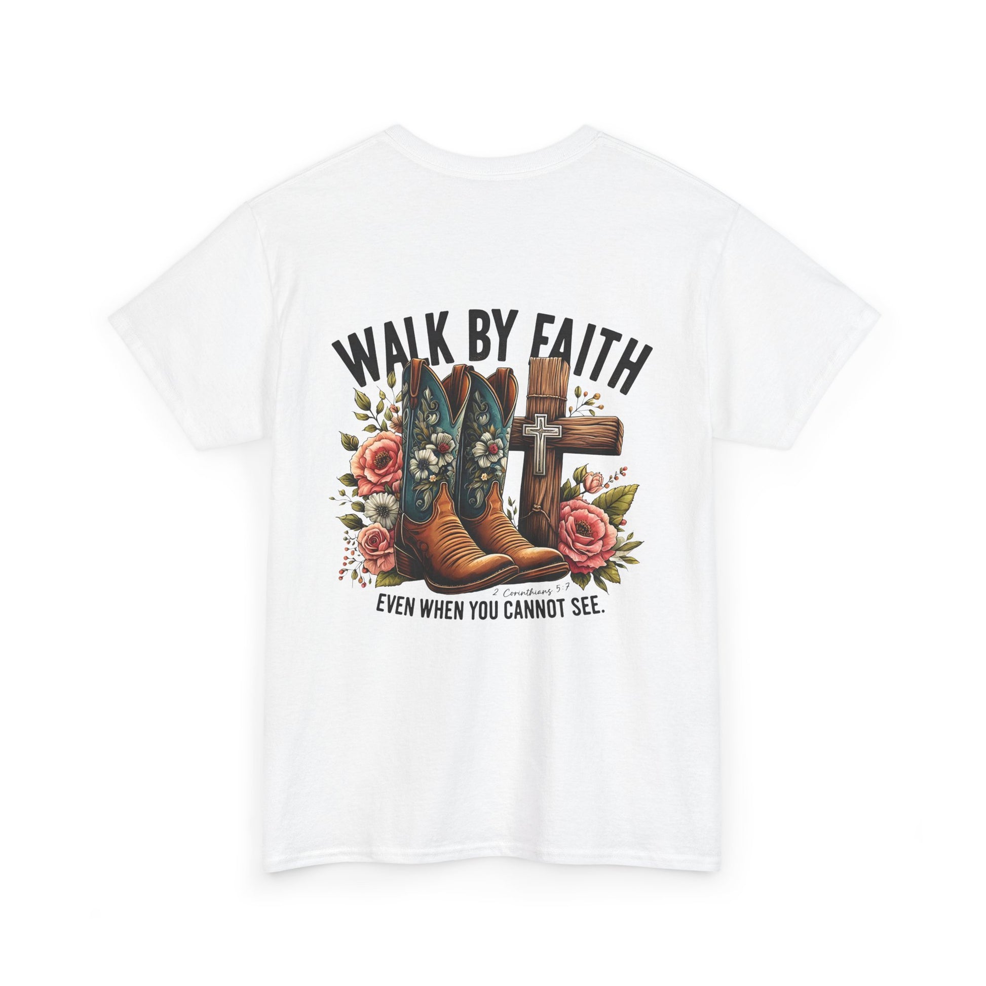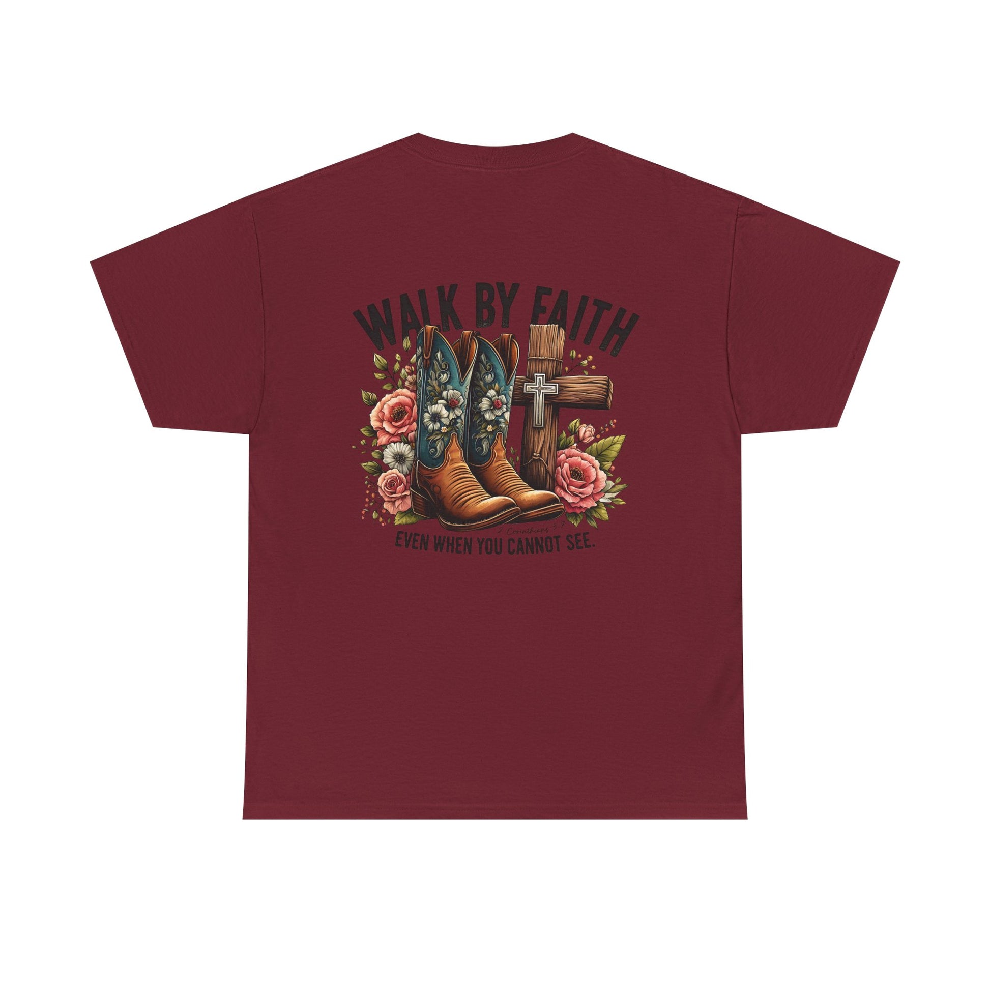 Walk by Faith Unisex Heavy Cotton Tee - Inspirational Cowboy Boots Shirt, Faith-Based Apparel, Christian Gift, Casual Everyday Wear,